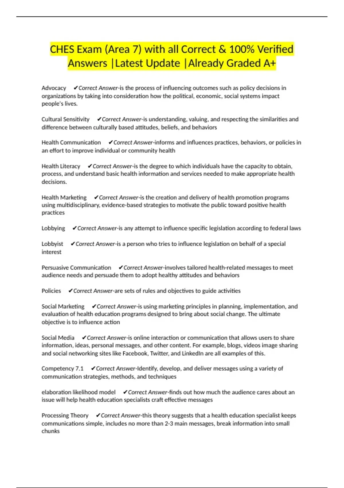 Answers |Latest Update |Already Graded A+