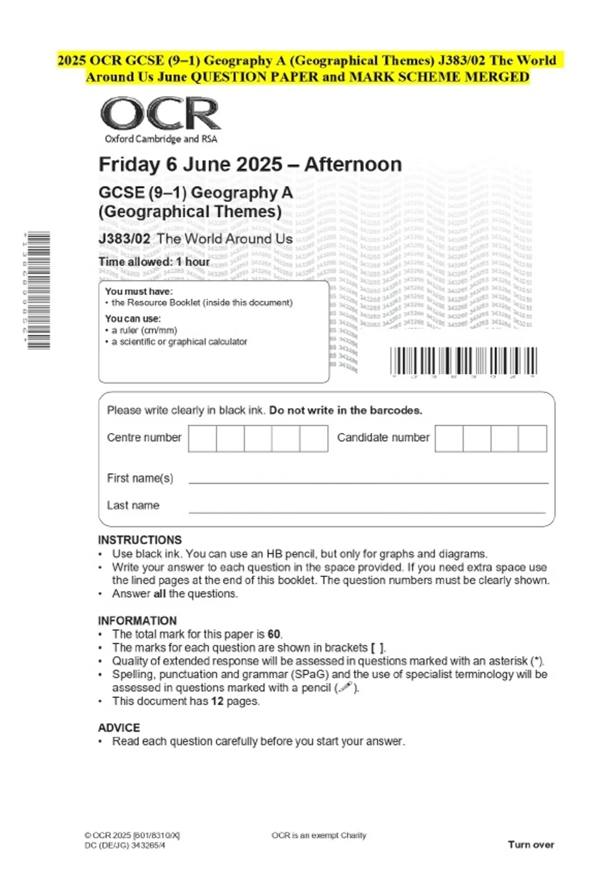 2025 OCR GCSE (9–1) Geography A (Geographical Themes) J383/01 Living in the UK Today May QUESTION PAPER and MARK SCHEME MERGED