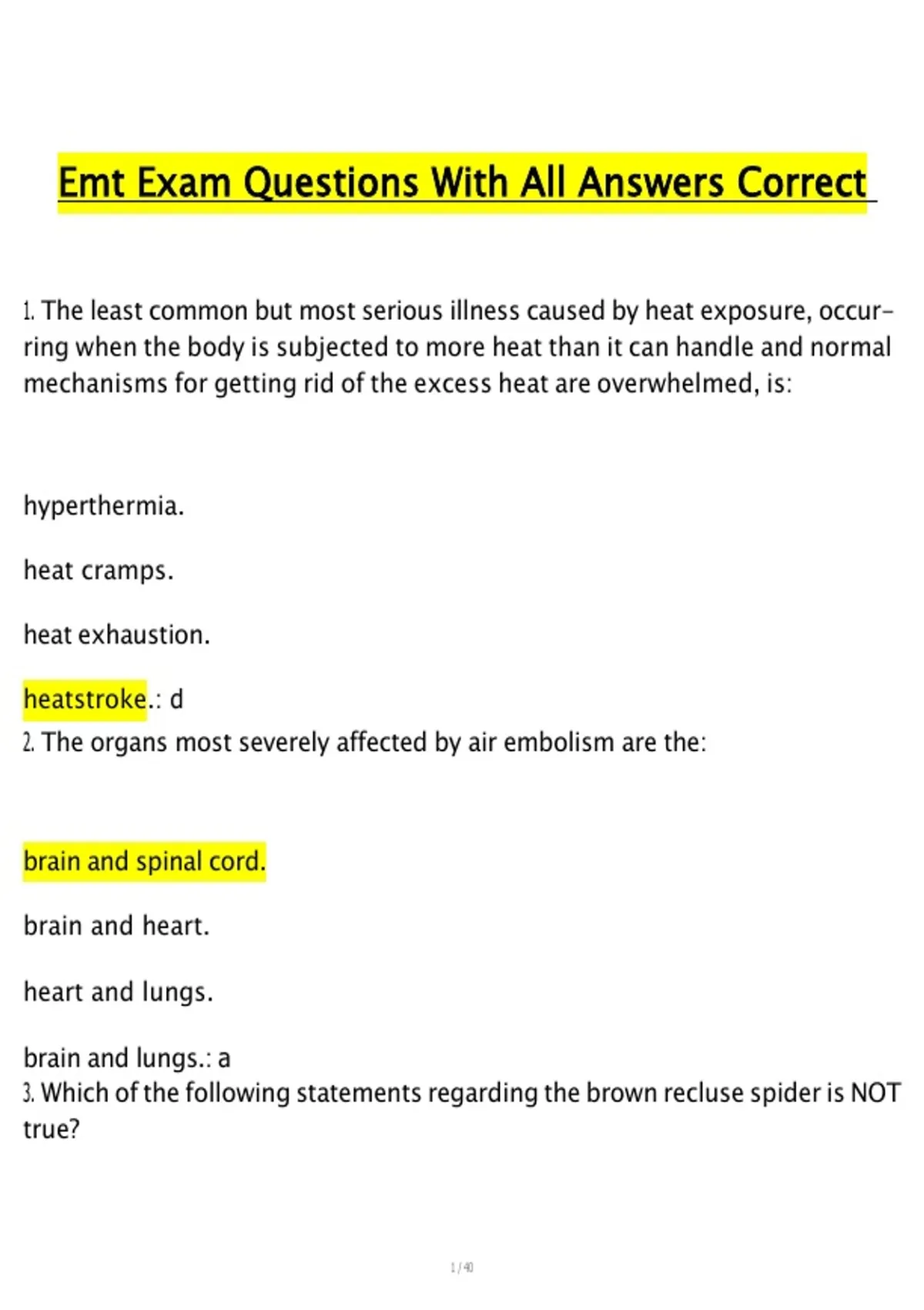 Emt Exam Questions With All Answers Correct
