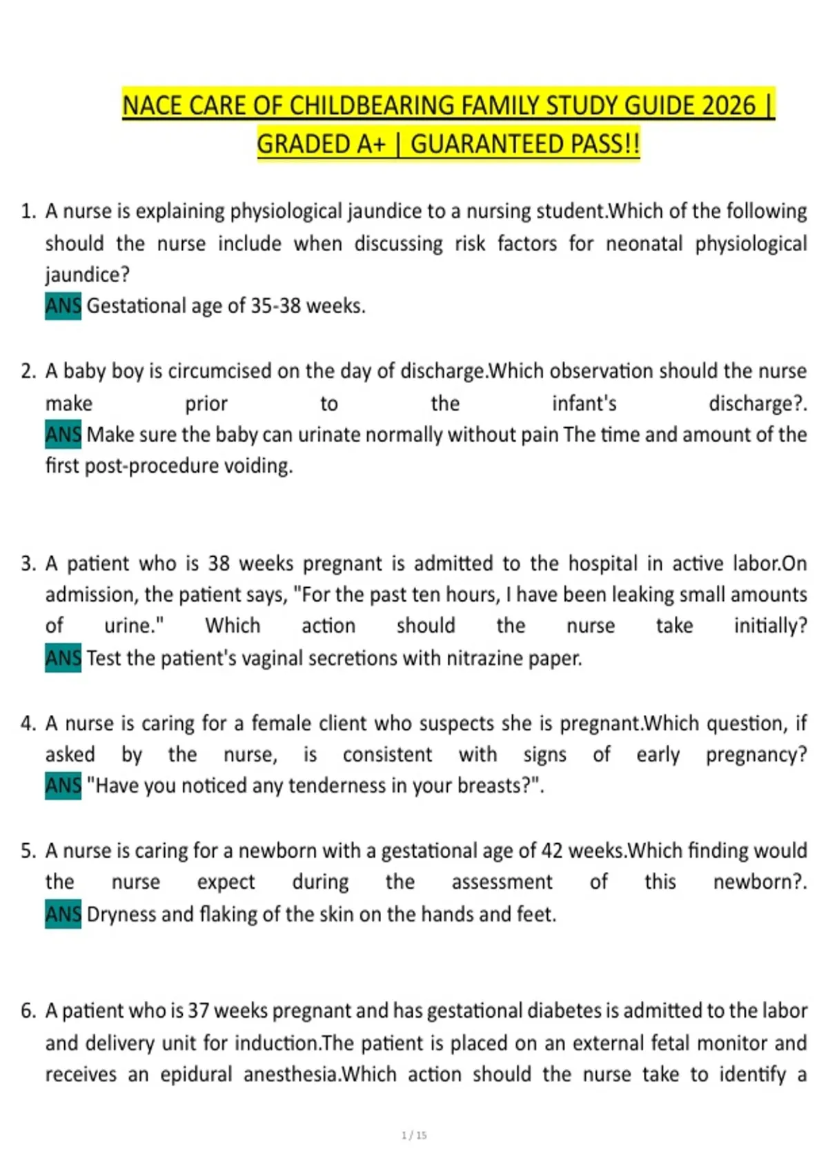 3. A patient who is 38 weeks pregnant is admitted to the hospital in active labor.On