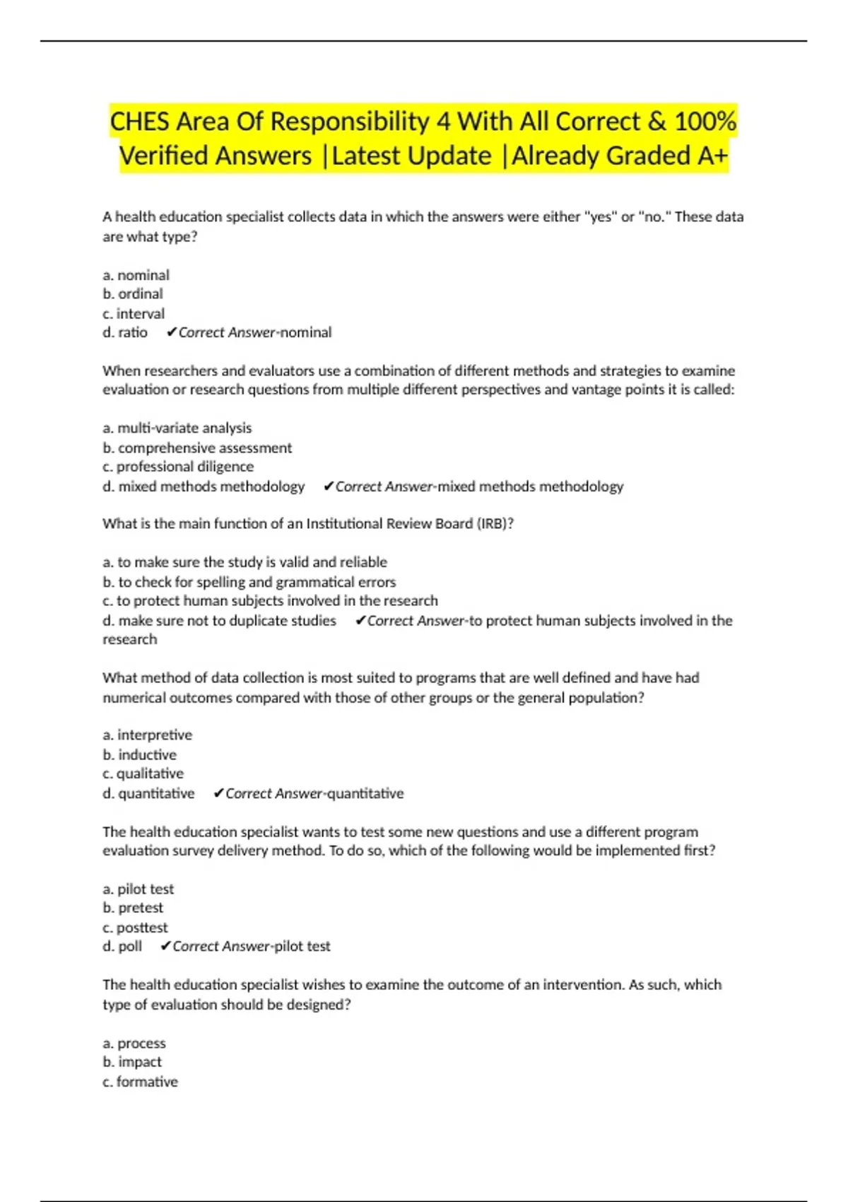 Verified Answers |Latest Update |Already Graded A+