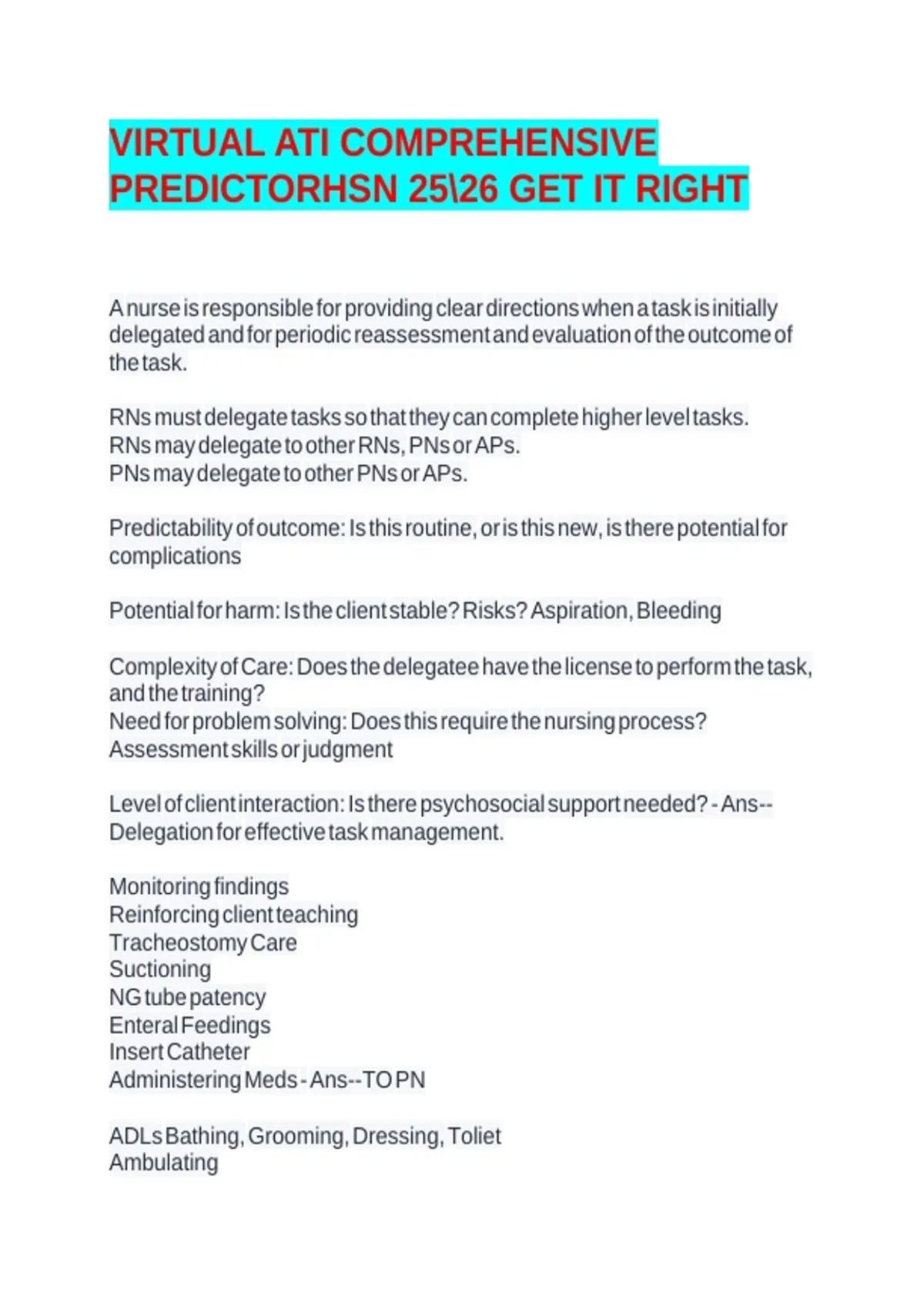 RNs must delegate tasks so that they can complete higher level tasks.