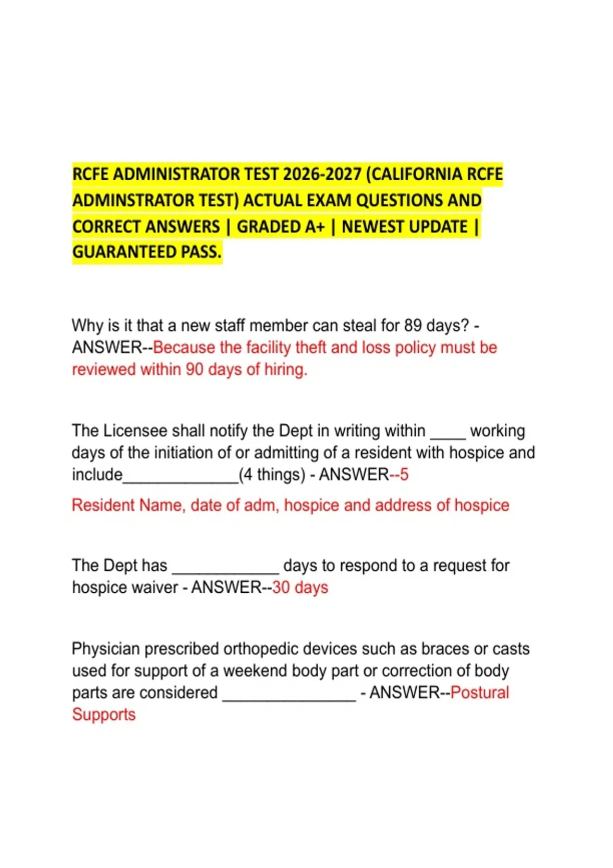 ADMINSTRATOR TEST) ACTUAL EXAM QUESTIONS AND