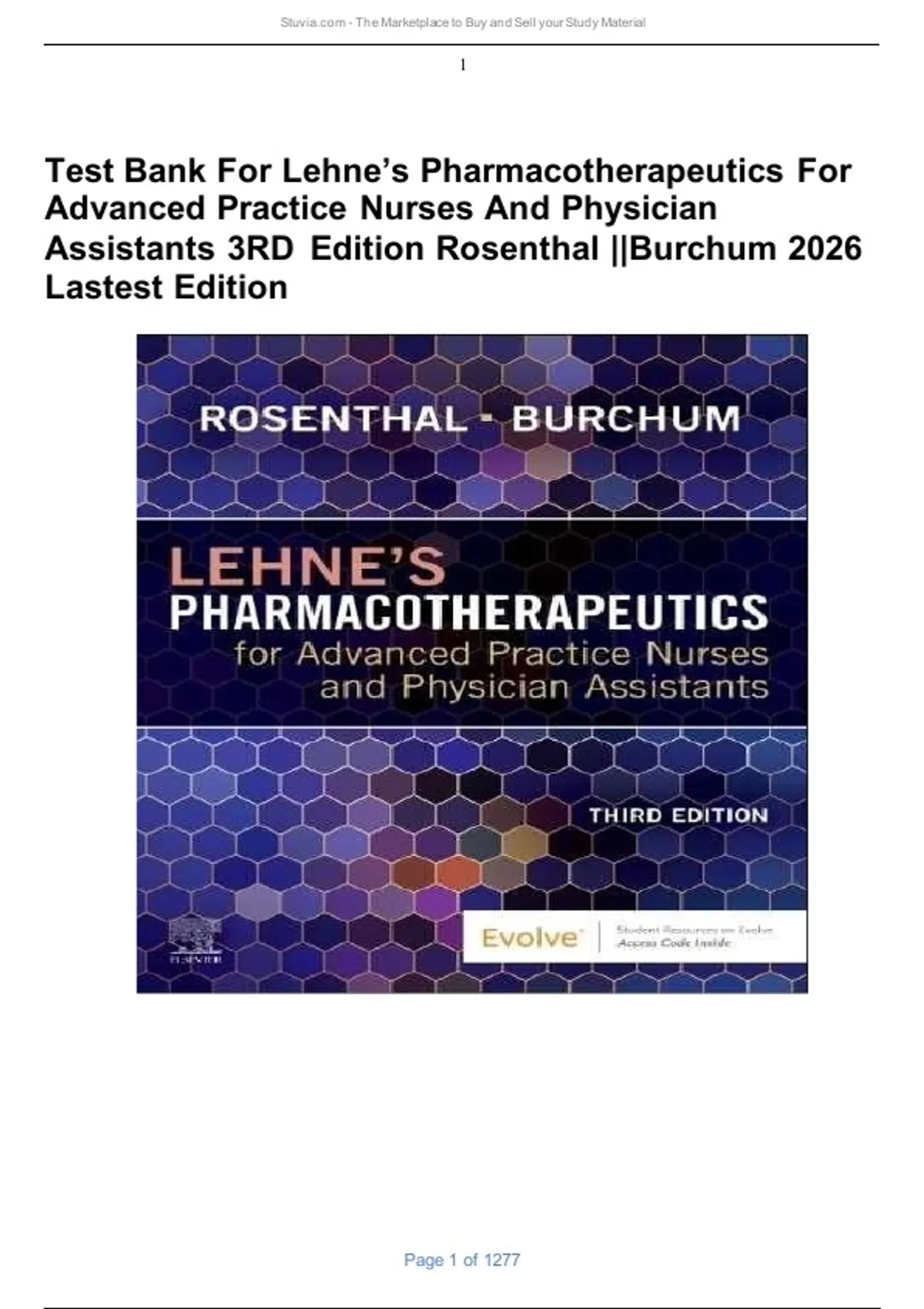 Test Bank For Lehne’s Pharmacotherapeutics For Advanced Practice Nurses And Physician Assistants 3RD Edition Rosenthal ||Burchum 2026 Lastest Edition