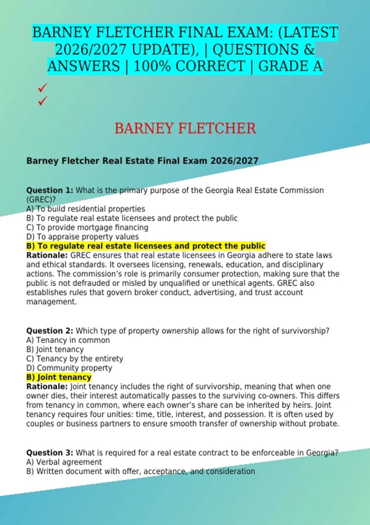 Barney Fletcher Real Estate Final Exam 2026/2027