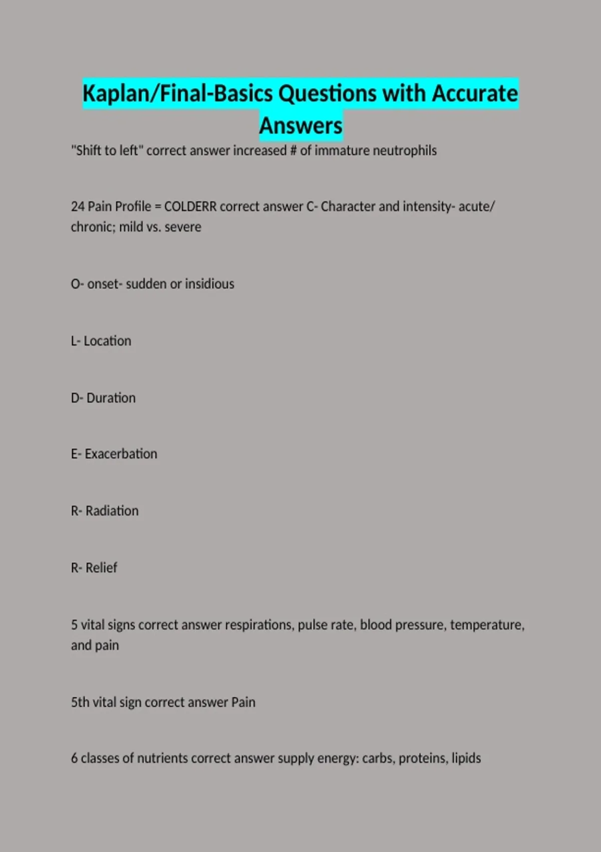 24 Pain Profile = COLDERR correct answer C- Character and intensity- acute/