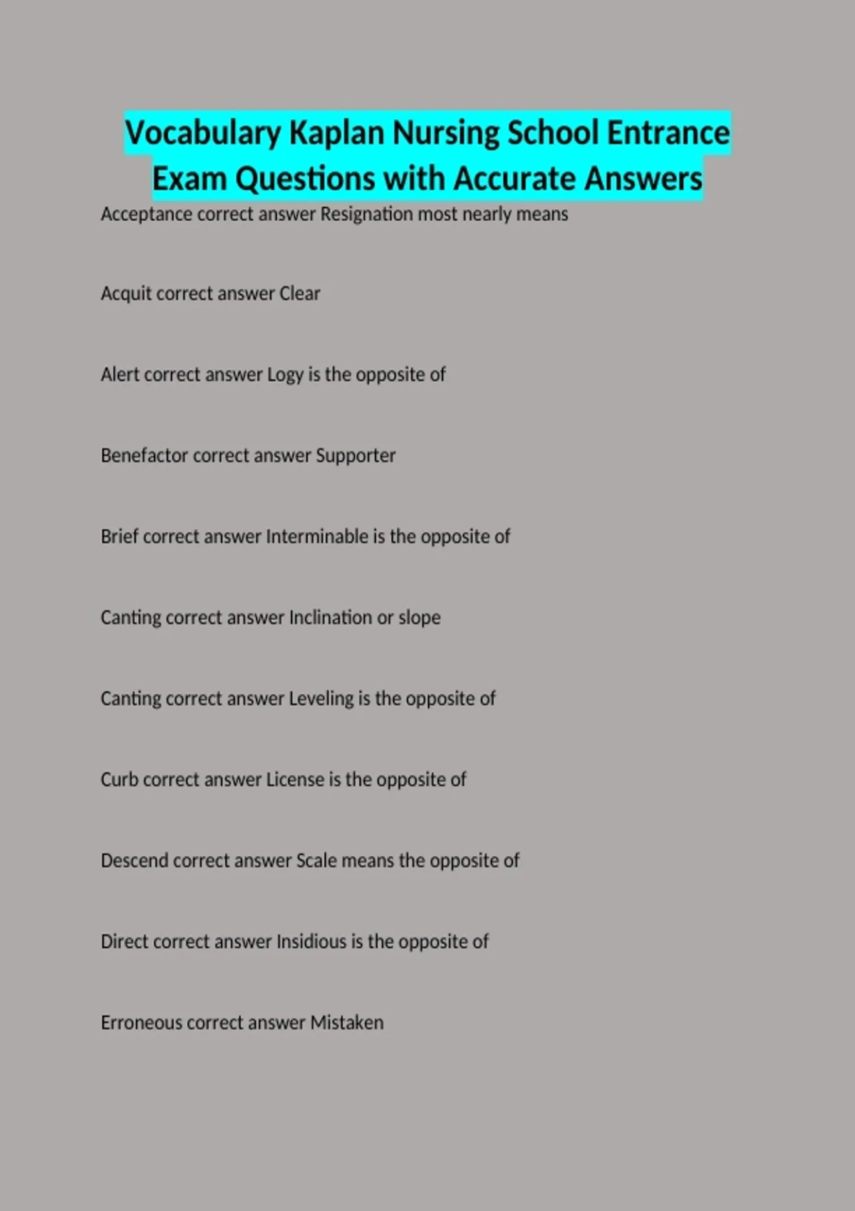 Acceptance correct answer Resignation most nearly means