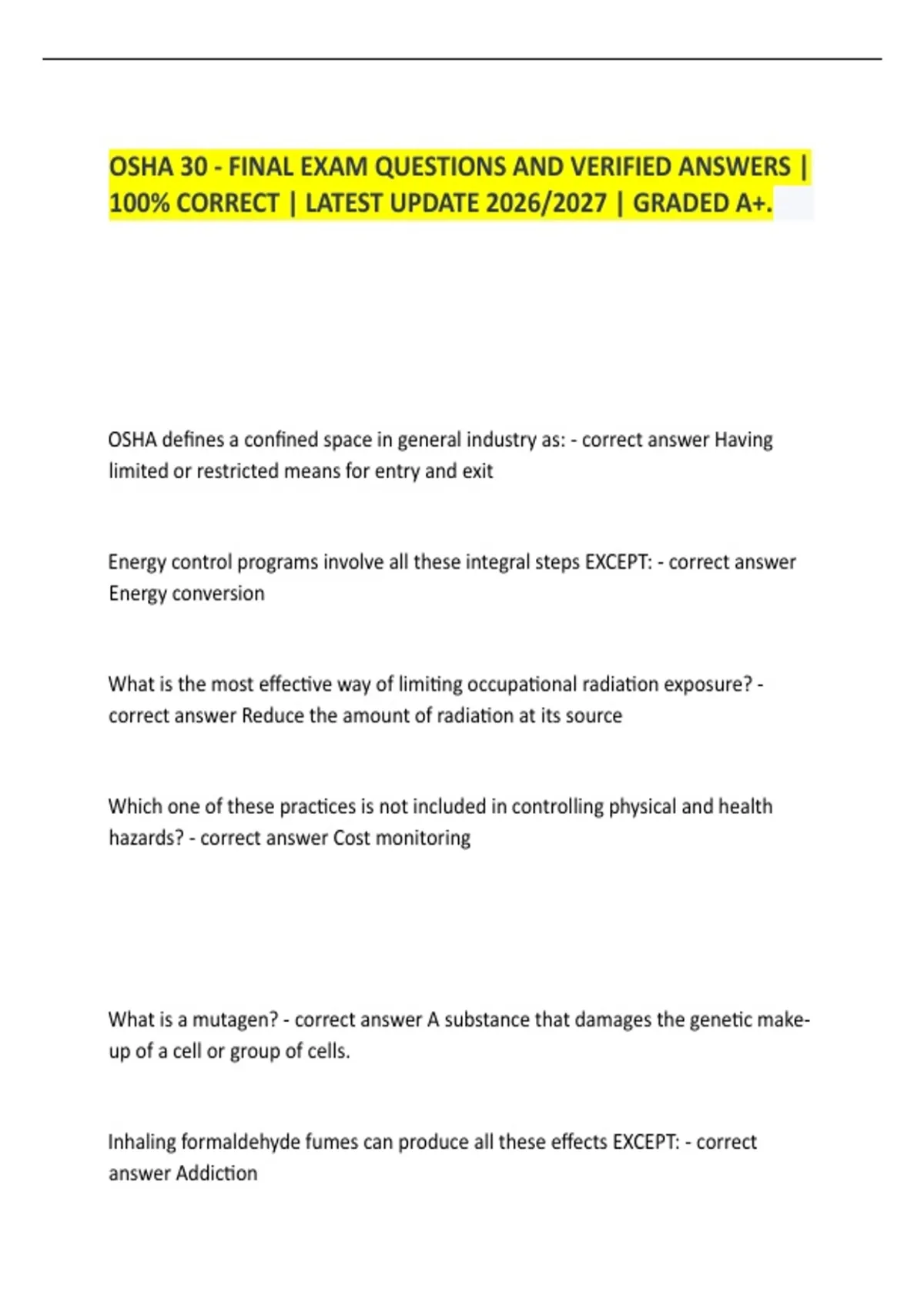 100% CORRECT | LATEST UPDATE 2026/2027 | GRADED A+.