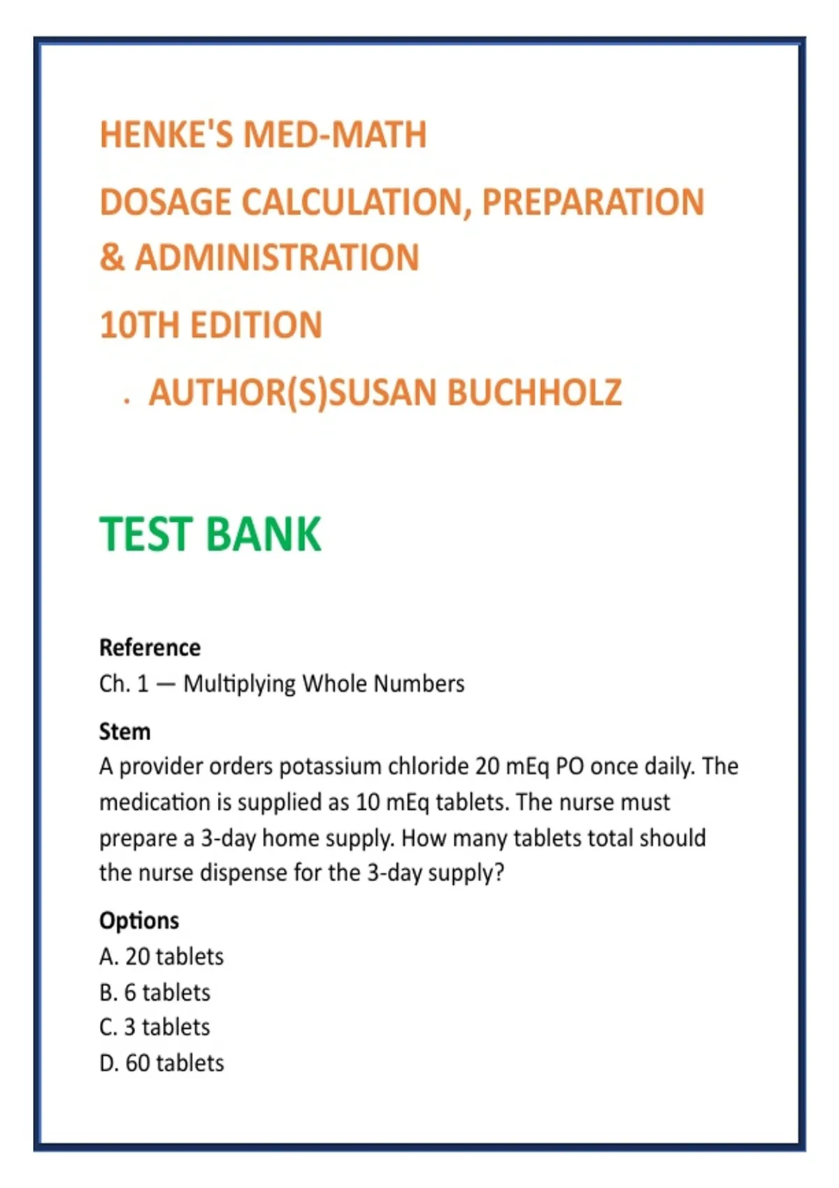 Buchholz, S. (2024). Henke’s Med-Math (10th ed.). Ch. 1.