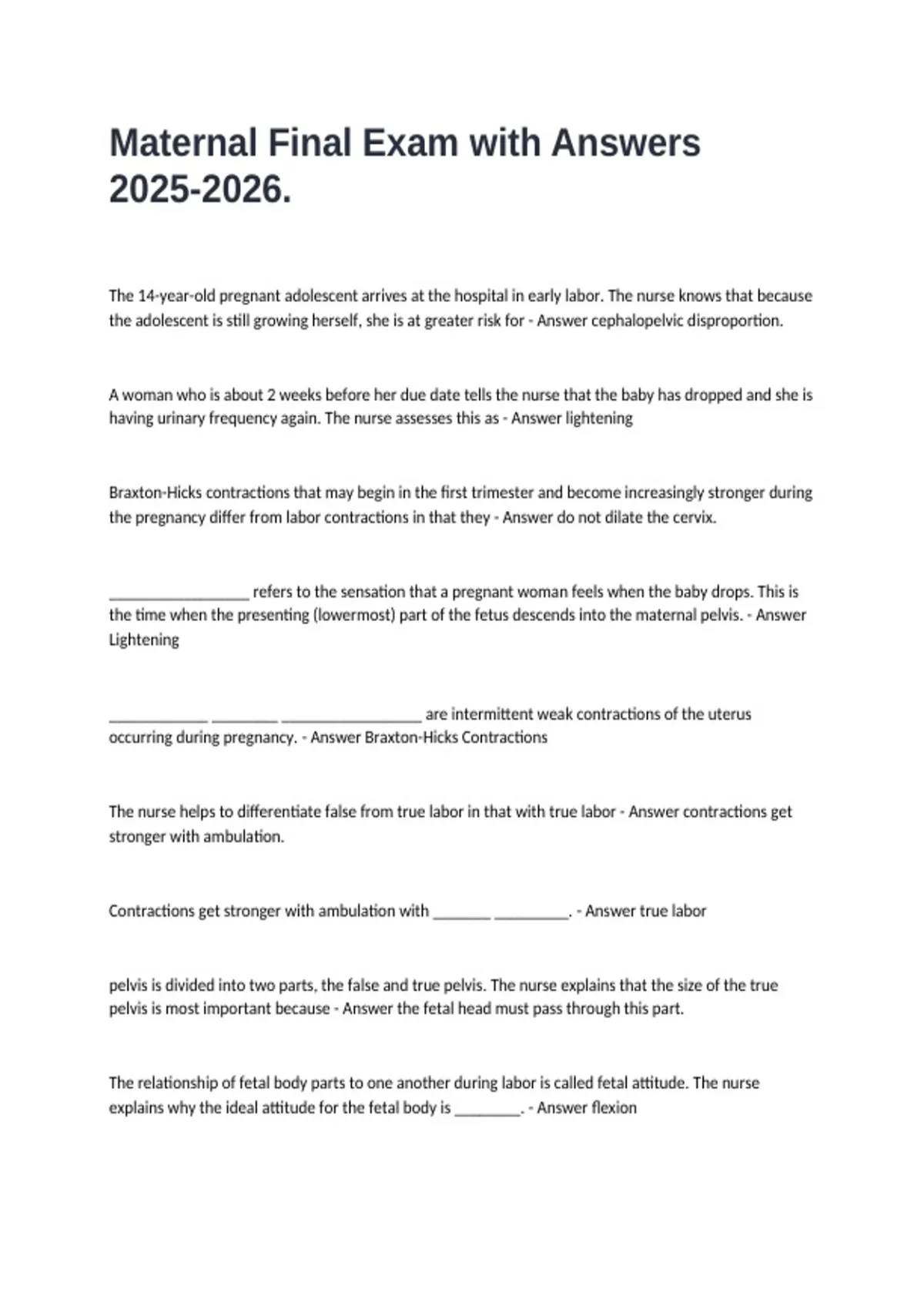 Maternal Final Exam with Answers