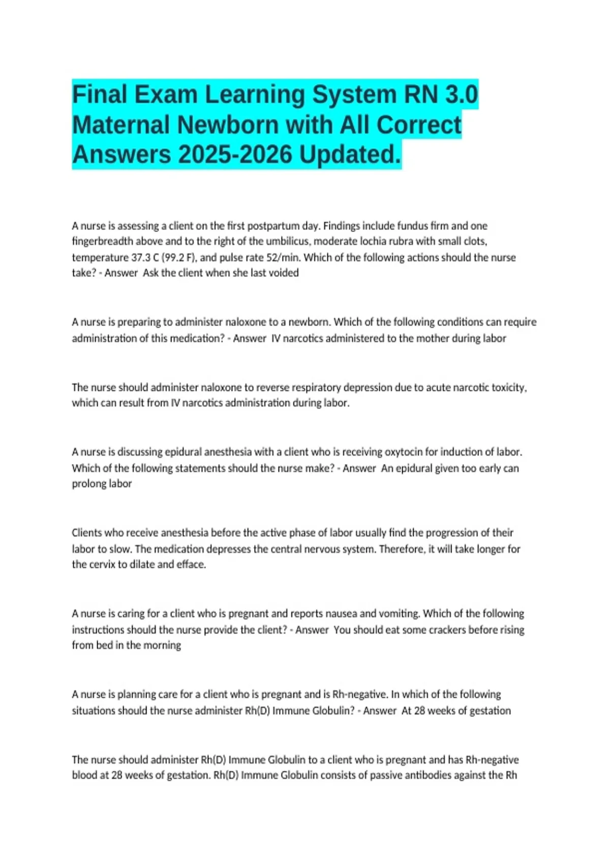 Maternal Final Exam with Answers .