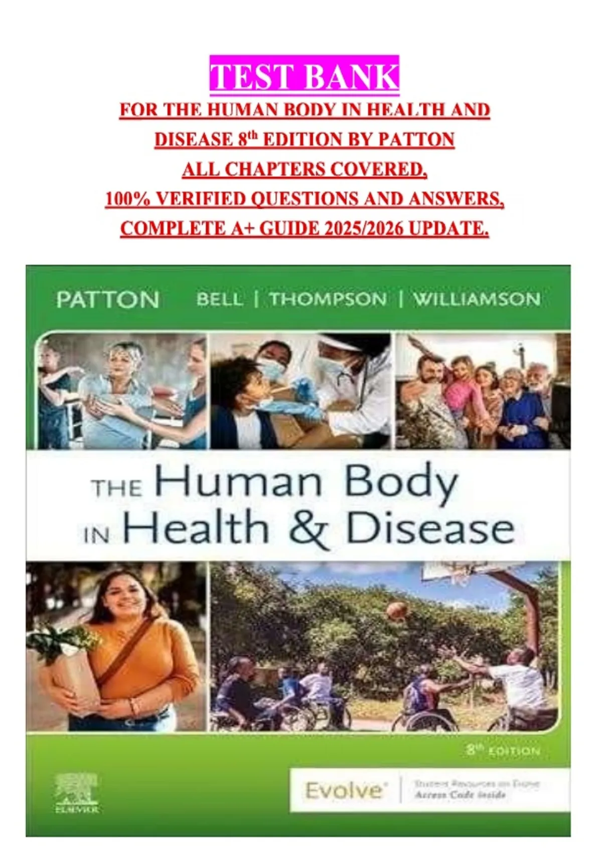 TEST BANK FOR THE HUMAN BODY IN HEALTH AND DISEASE 8th EDITION BY PATTON ALL CHAPTERS COVERED, 100% VERIFIED QUESTIONS AND ANSWERS, COMPLETE A+ GUIDE 2025/2026 UPDATE. TEST BANK FOR THE HUMAN BODY IN HEALTH AND DISEASE 8th EDITION BY PATTON ALL CHAPTERS COVERED, 100% VERIFIED QUESTIONS AND ANSWERS, COMPLETE A+ GUIDE 2025/2026 UPDATE. TEST BANK FOR THE HUMAN BODY IN HEALTH AND DISEASE 8th EDITION BY PATTON ALL CHAPTERS COVERED, 100% VERIFIED QUESTIONS AND ANSWERS, COMPLETE A+ GUIDE 2025/2026 UPDATE.