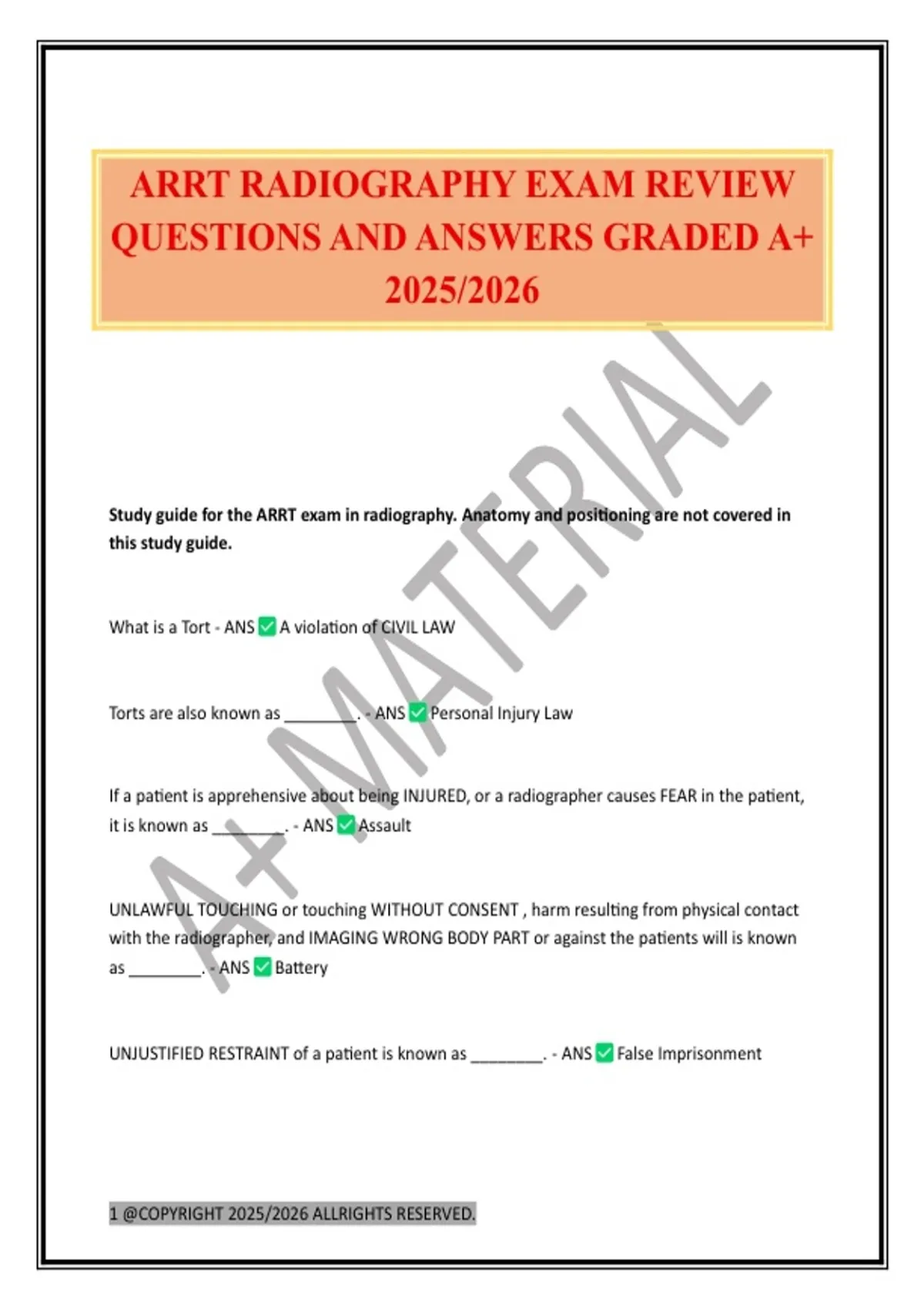 ARRT RADIOGRAPHY EXAM REVIEW QUESTIONS AND ANSWERS GRADED A+ 2025/2026