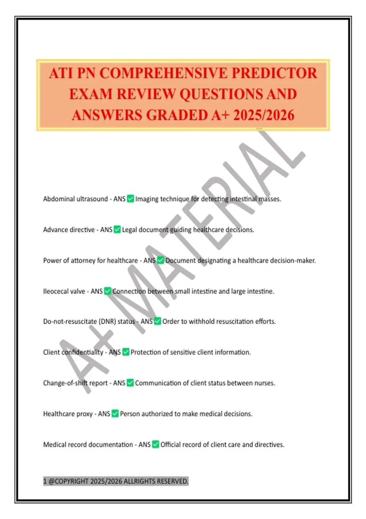 ATI PN COMPREHENSIVE PREDICTOR EXAM REVIEW QUESTIONS AND ANSWERS GRADED A+ 2025/2026