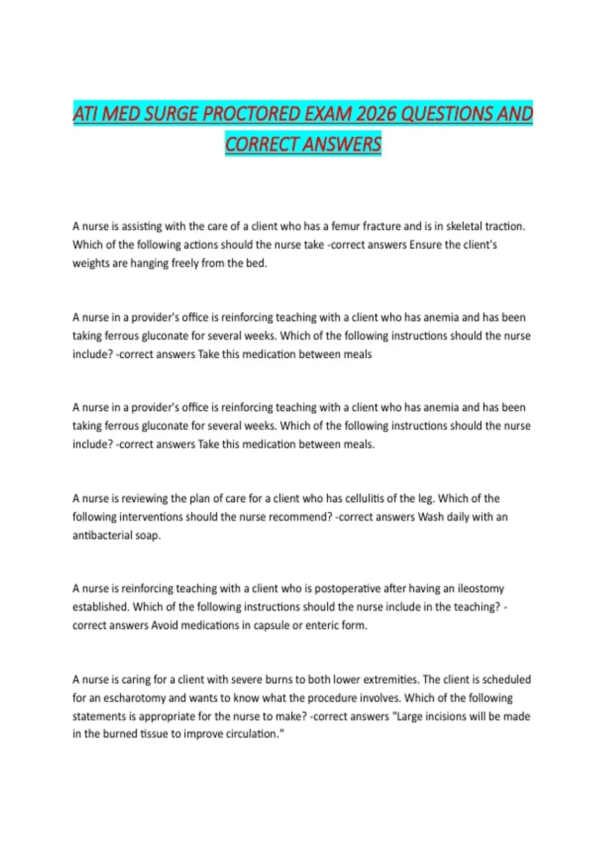 -correct answers "You will remain NPO for 8 hours before the procedure."