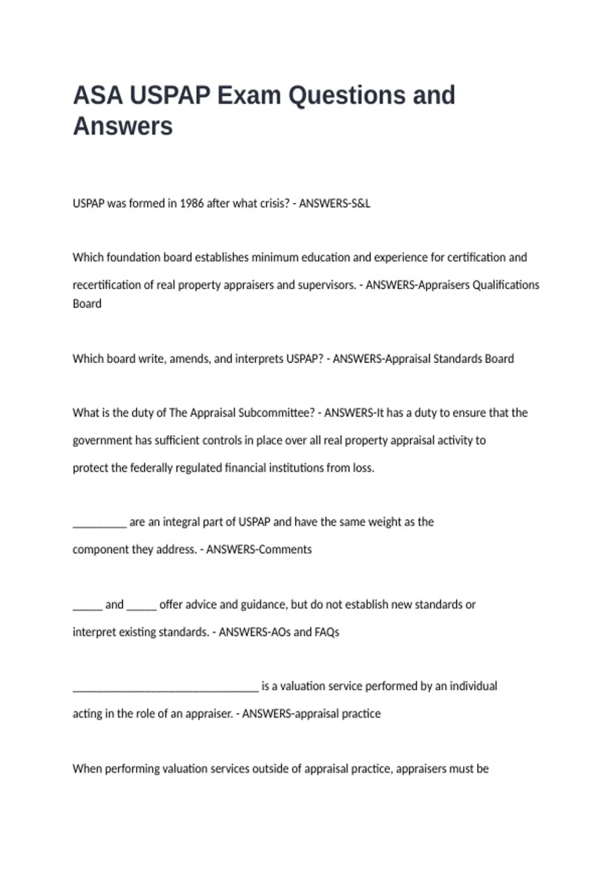 ASA USPAP Exam Questions and