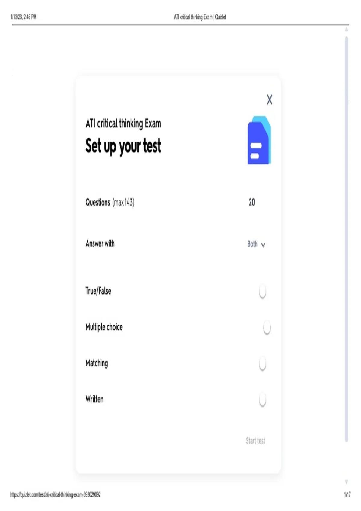 ,1/13/26, 2:45 PM ATI critical thinking Exam | Quizlet