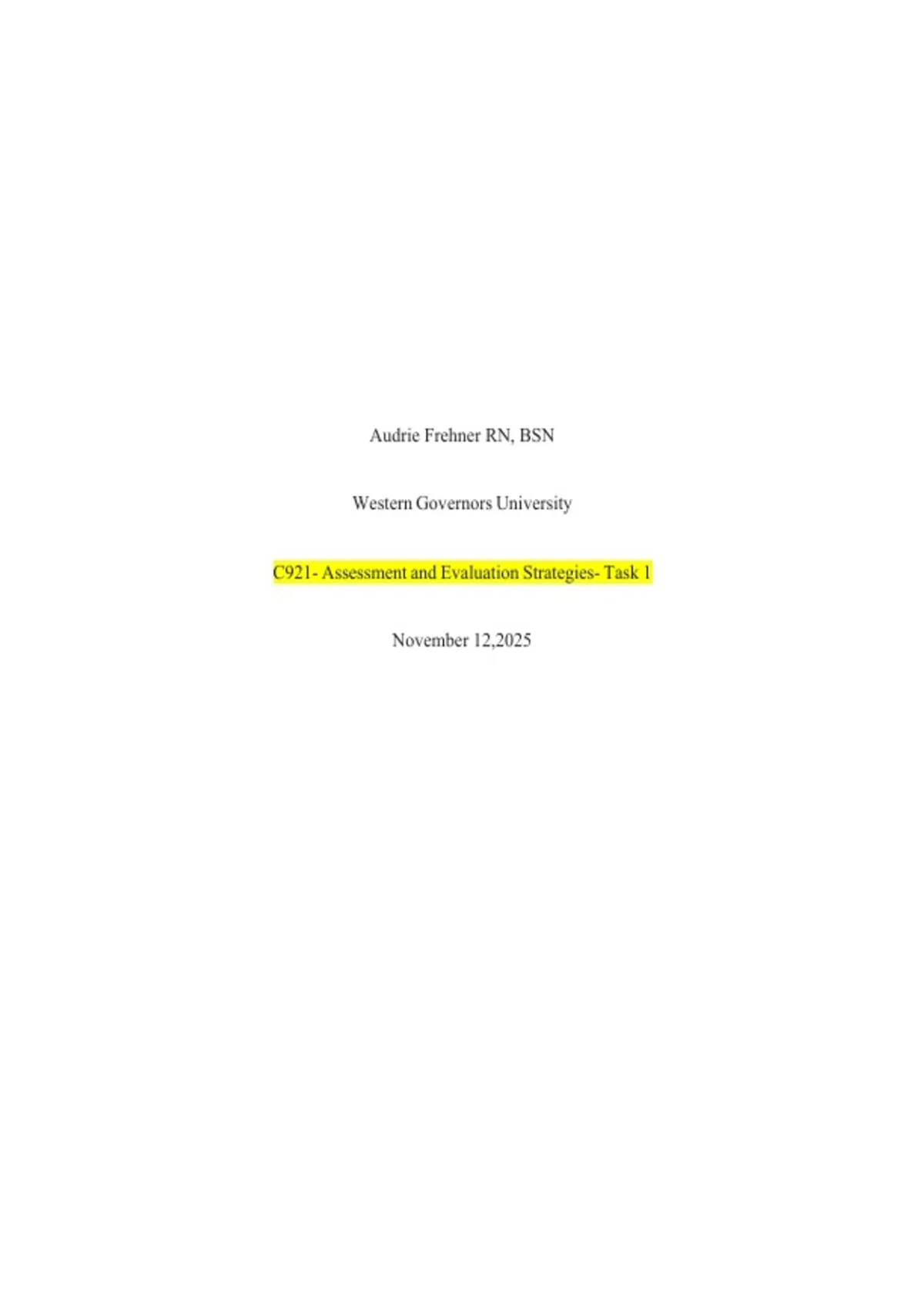 C921- Assessment and Evaluation Strategies- Task 1