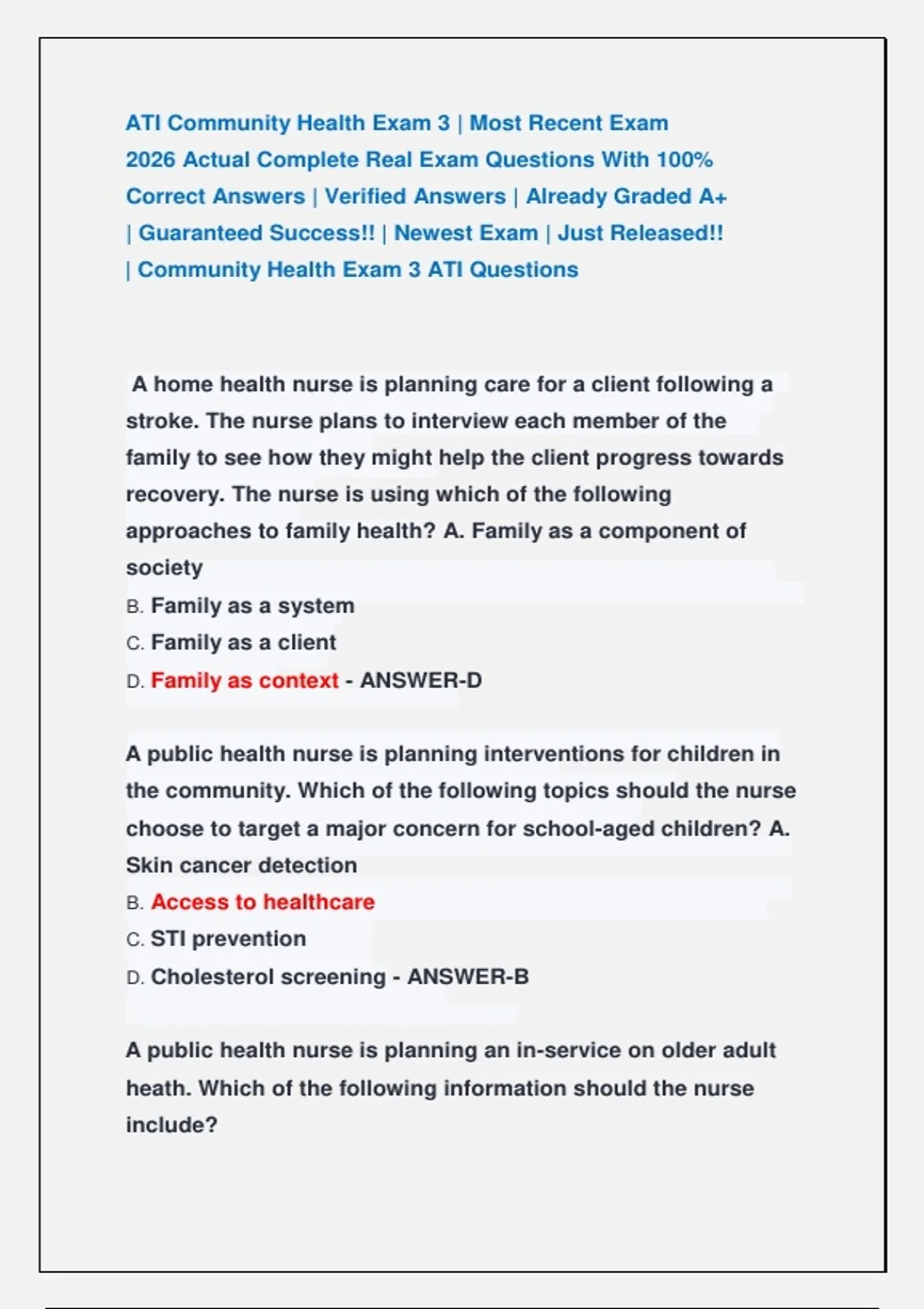 | Community Health Exam 3 ATI Questions