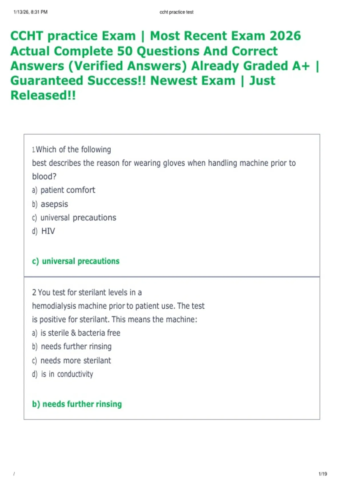 ,1/13/26, 8:31 PM ccht practice test