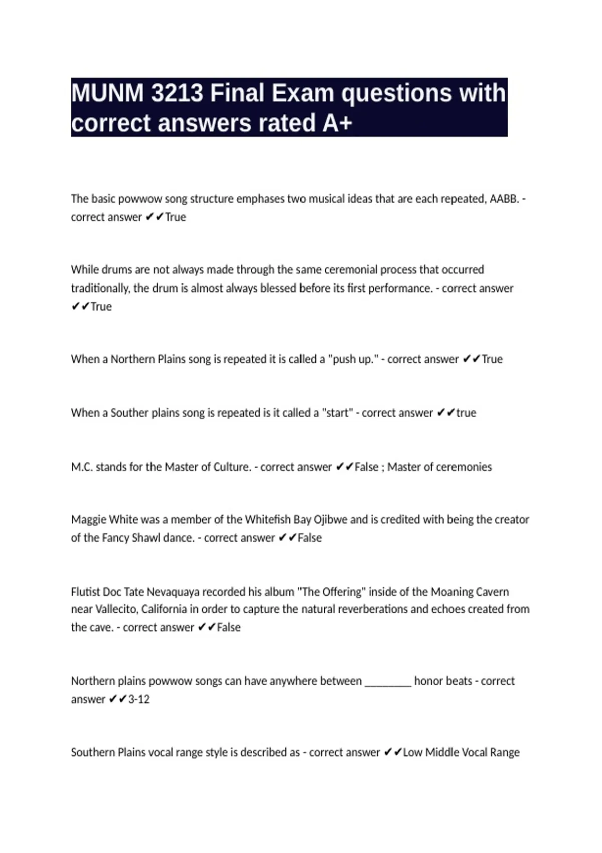 MUNM 3213 Final Exam questions with correct answers rated A+