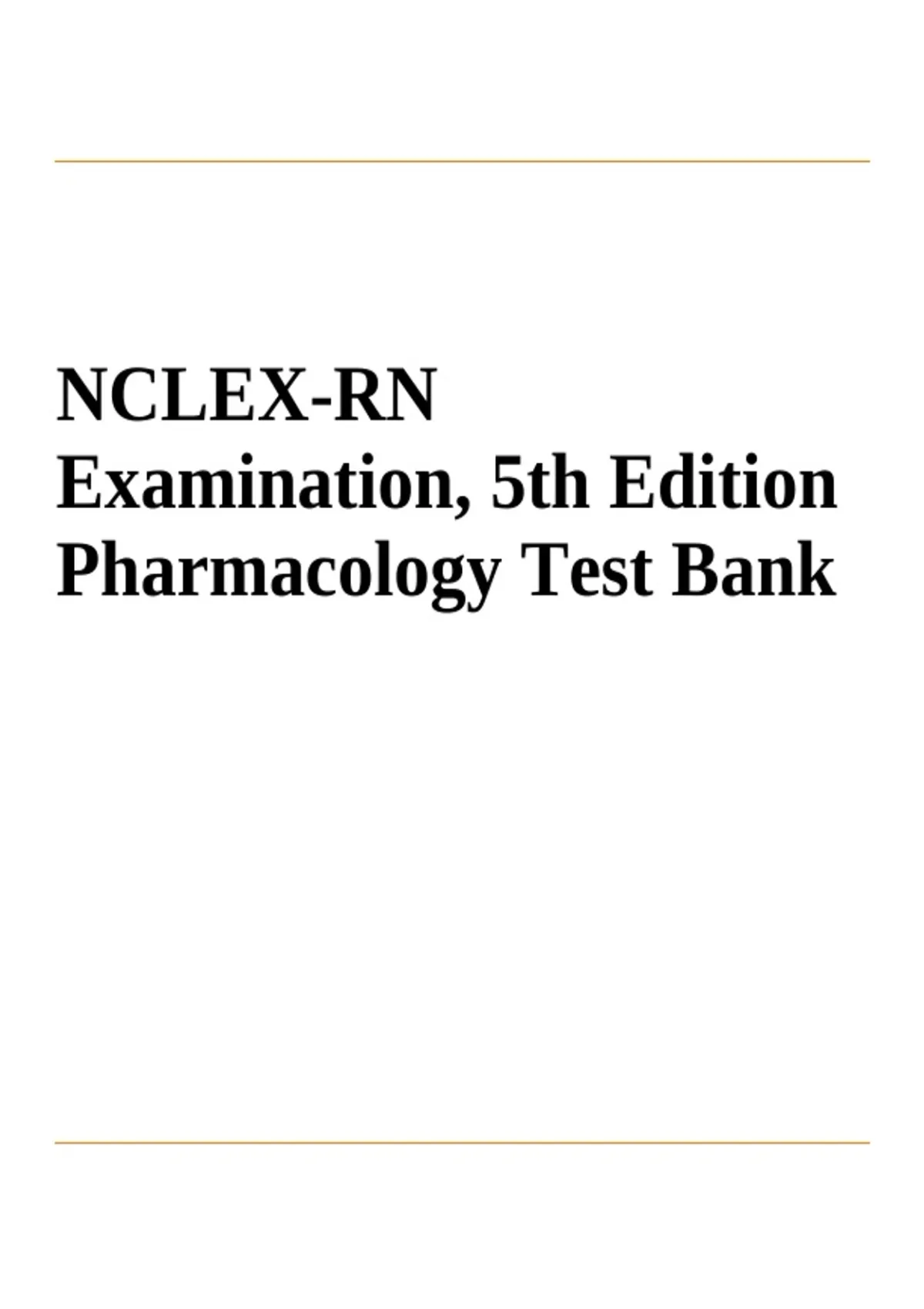 NCLEX-RN Examination, 5th Edition Pharmacology Test Bank