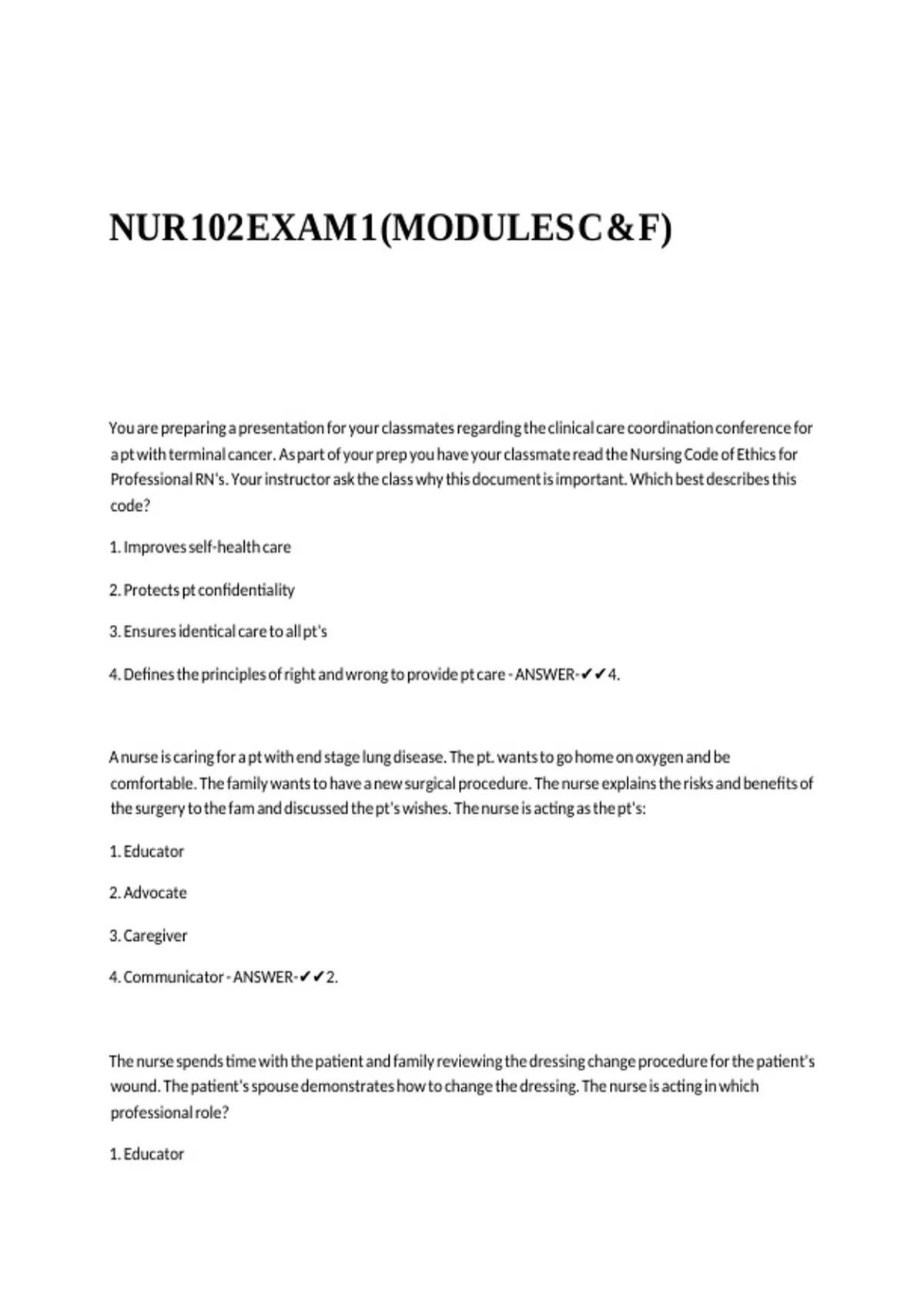 4. Defines the principles of right and wrong to provide pt care - ANSWER-✔✔4.