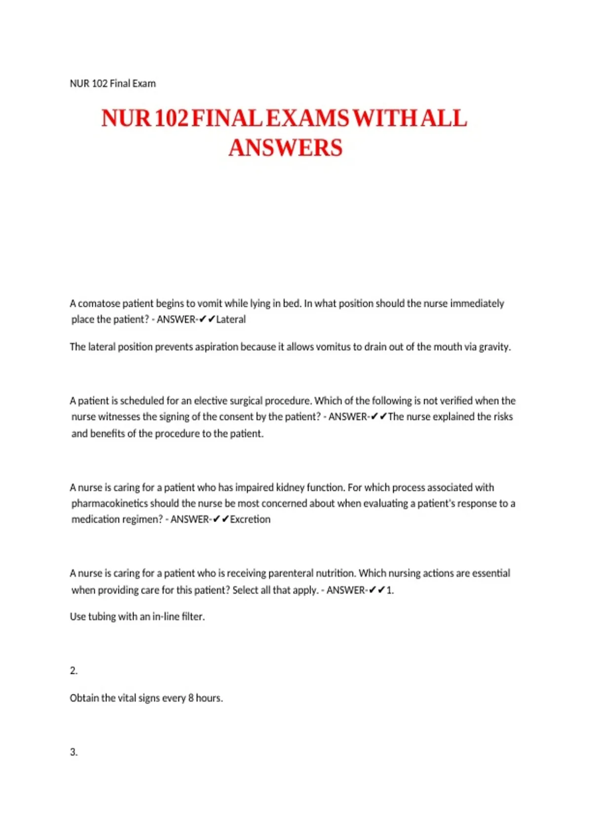 NUR 102 FINAL EXAMS WITH ALL vv vv vv vv vv