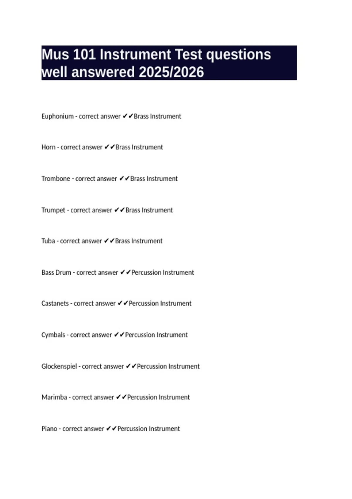 Mus 101 Instrument Test questions well answered 2025/2026