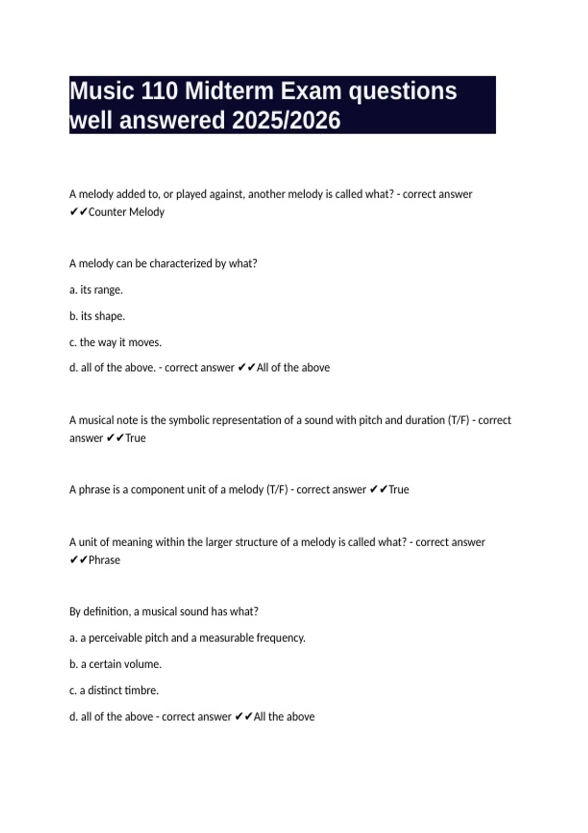 Meter is the measurement of musical time (T/F) - correct answer ✔✔True