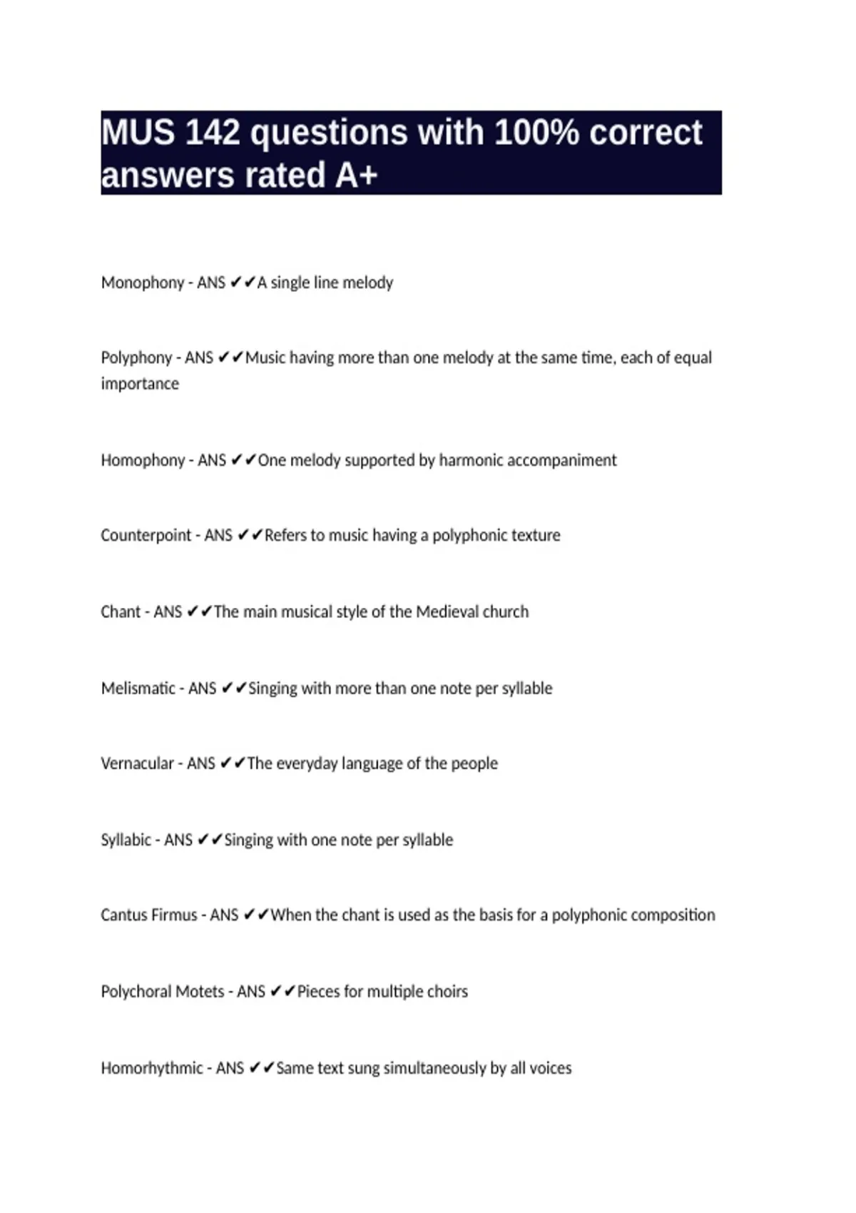 Counterpoint - ANS ✔✔Refers to music having a polyphonic texture