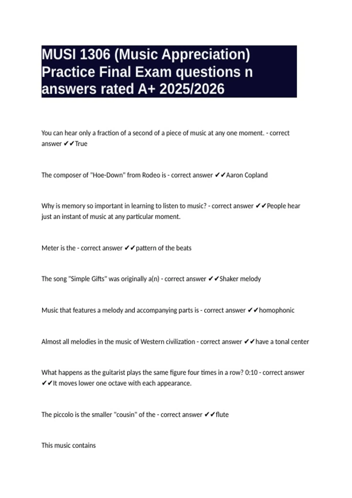 Why is memory so important in learning to listen to music? - correct answer ✔✔People hear