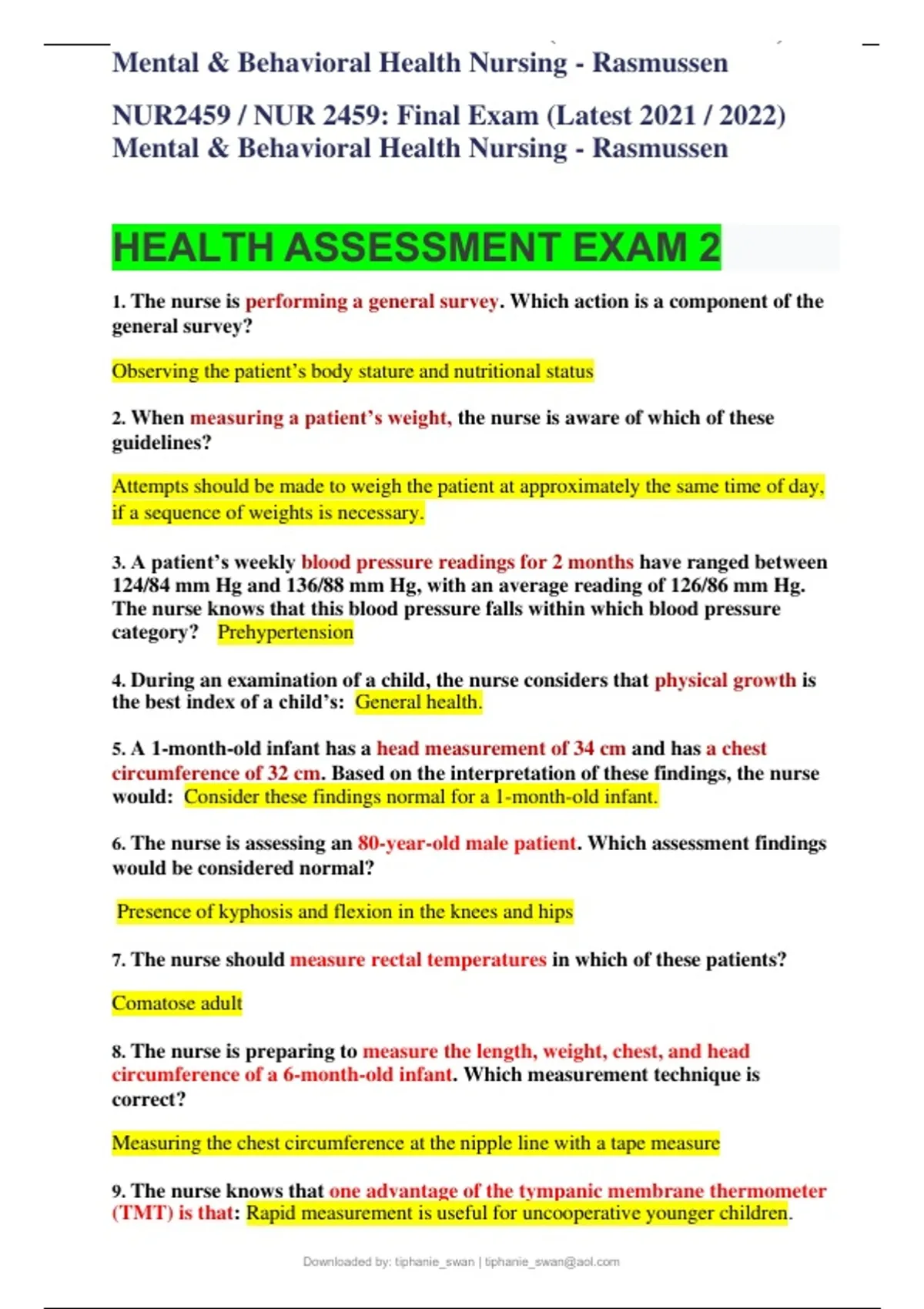 NUR2459 / NUR 2459: Final Exam (Latest )