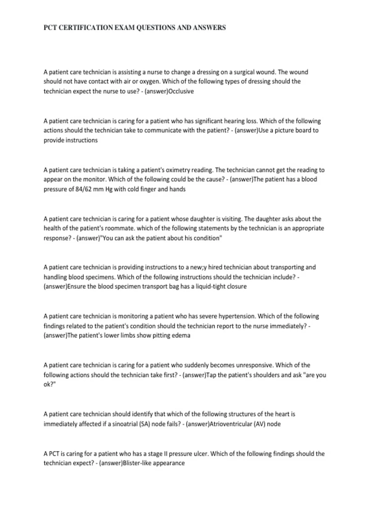 , PCT CERTIFICATION EXAM QUESTIONS AND ANSWERS