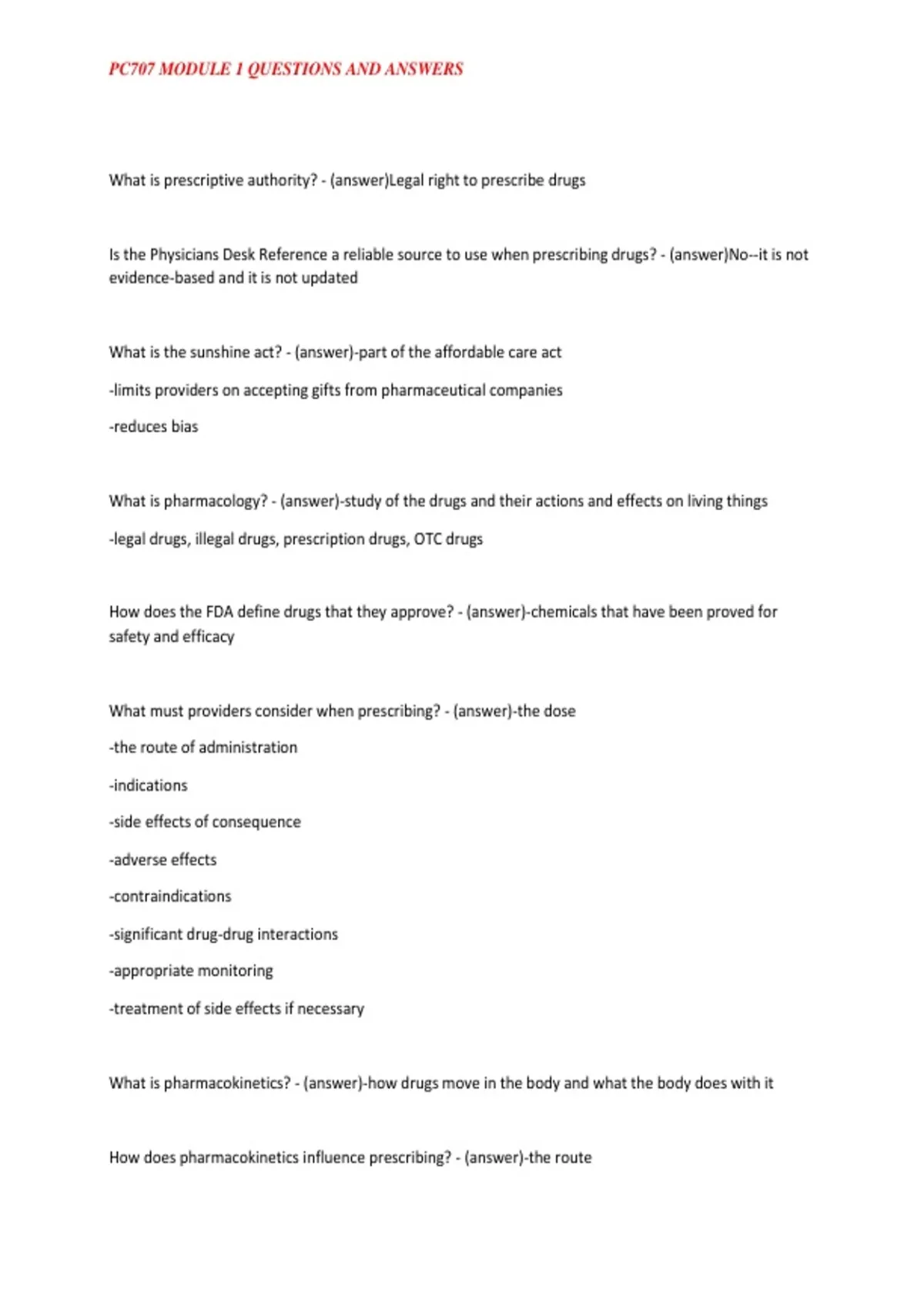 , PC707 MODULE 1 QUESTIONS AND ANSWERS