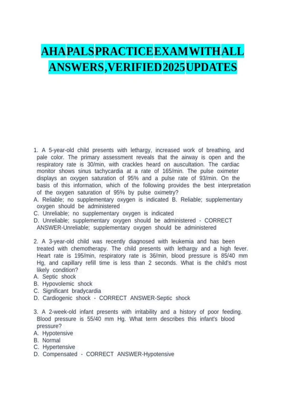 AHA PALS PRACTICE EXAM WITH ALL v v v v v