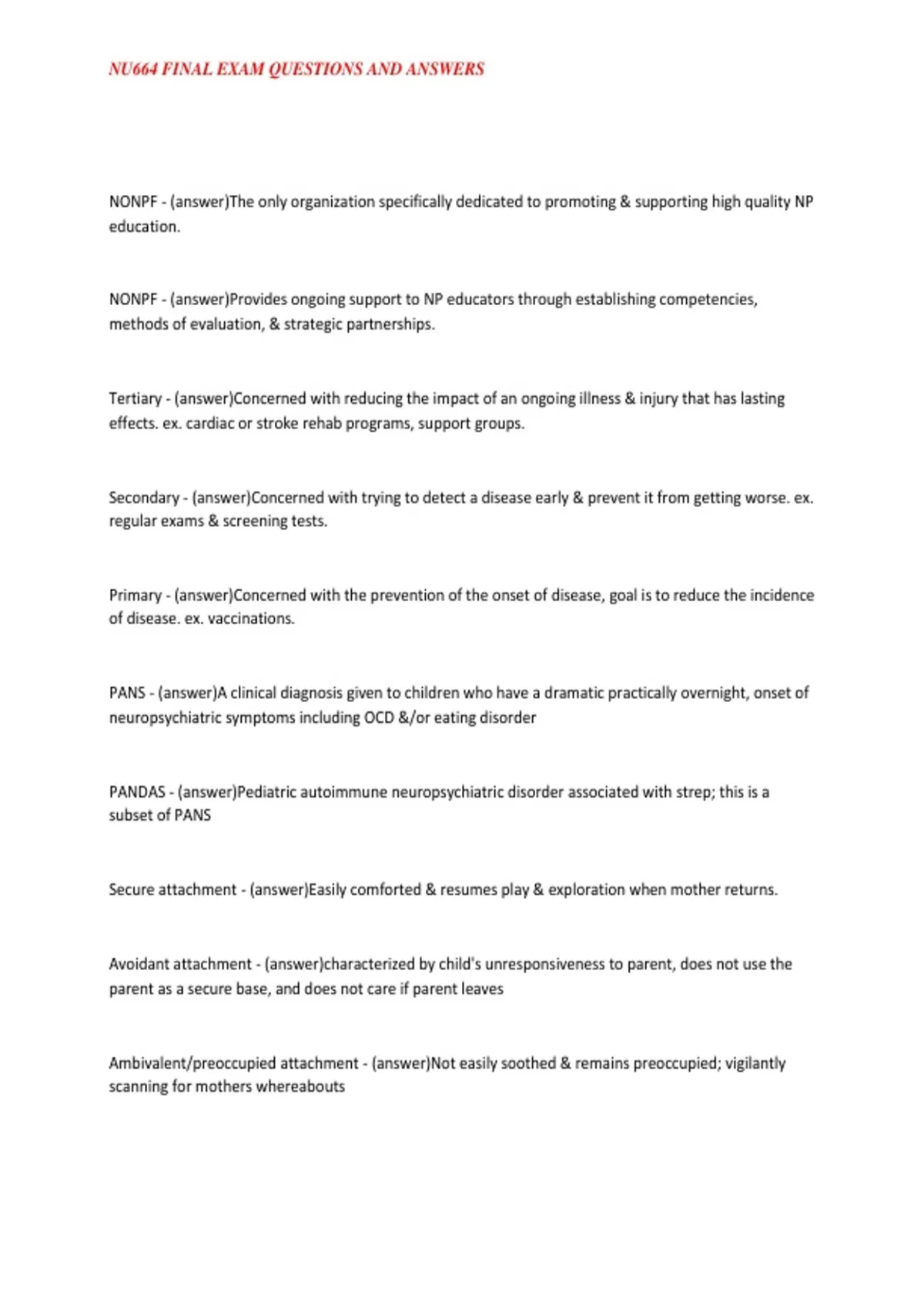 NU664 FINAL EXAM QUESTIONS AND ANSWERS