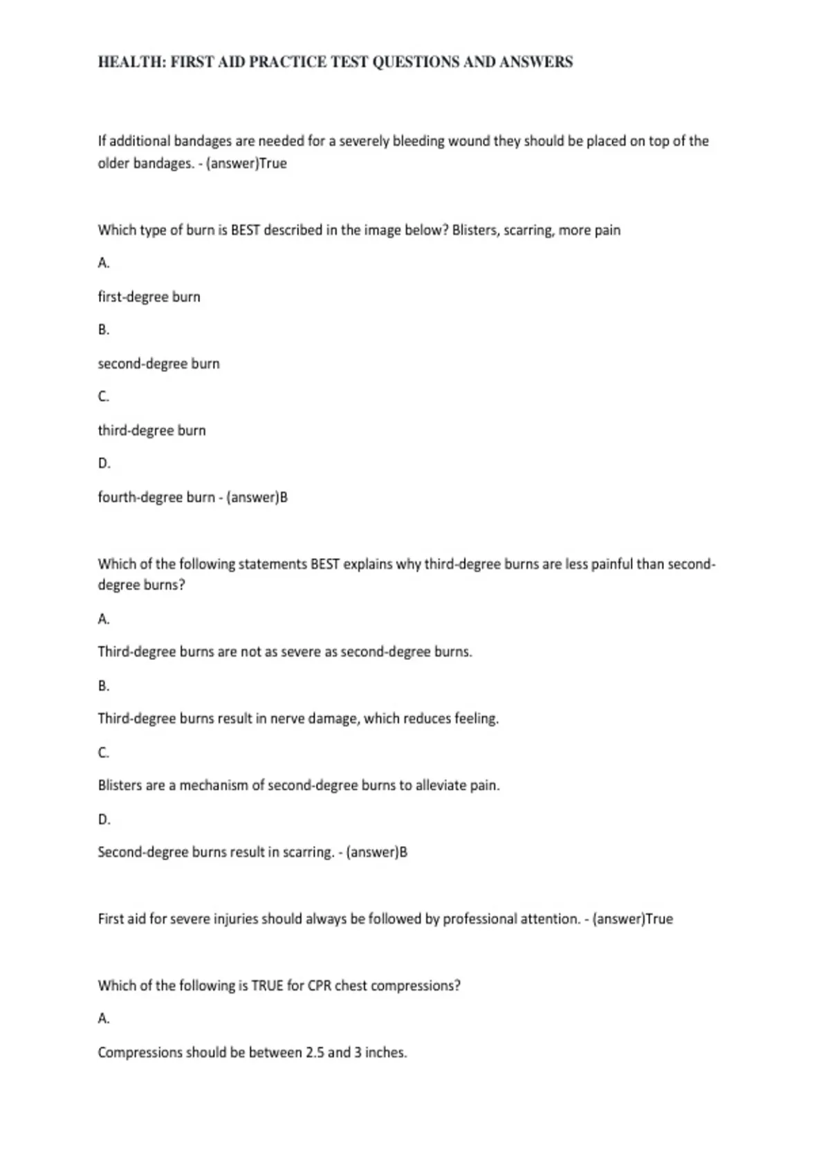 HEALTH: FIRST AID PRACTICE TEST QUESTIONS AND ANSWERS