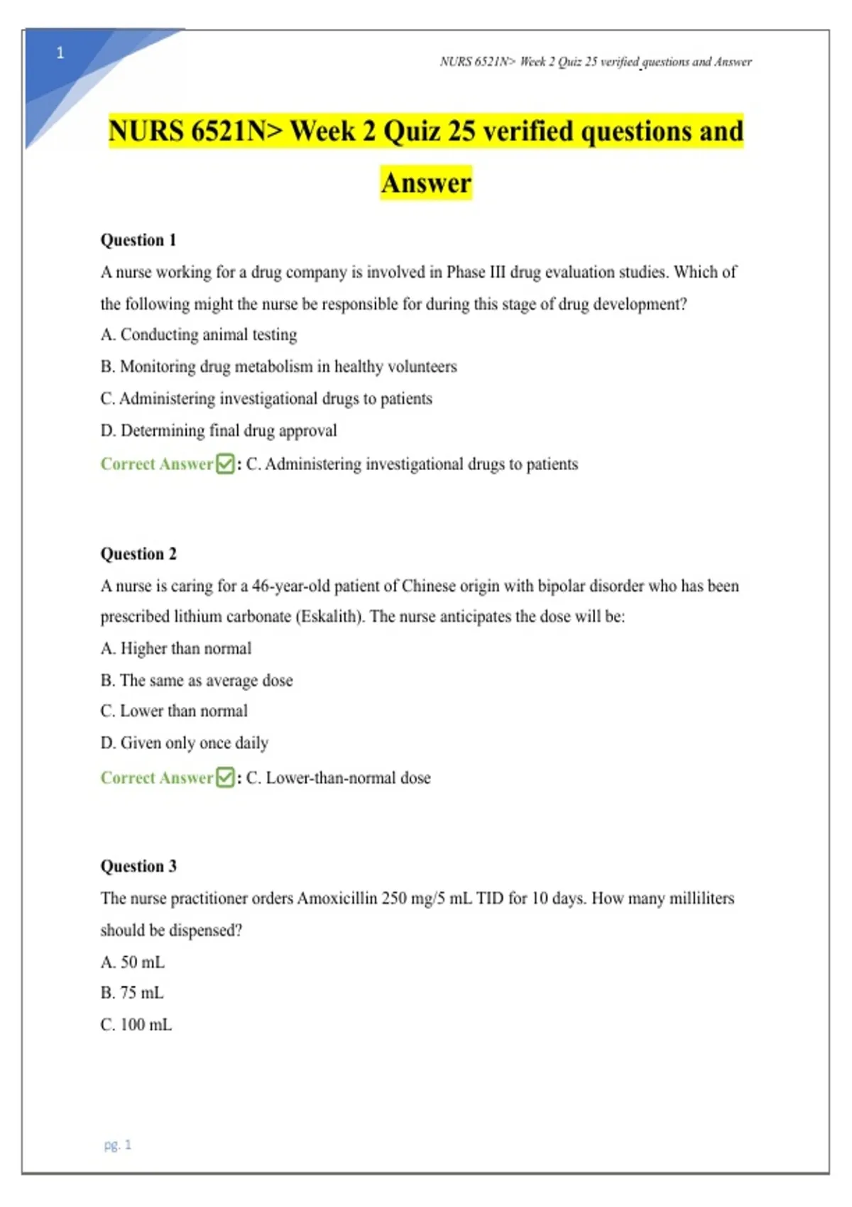 NURS 6521N> Week 2 Quiz 25 verified questions and