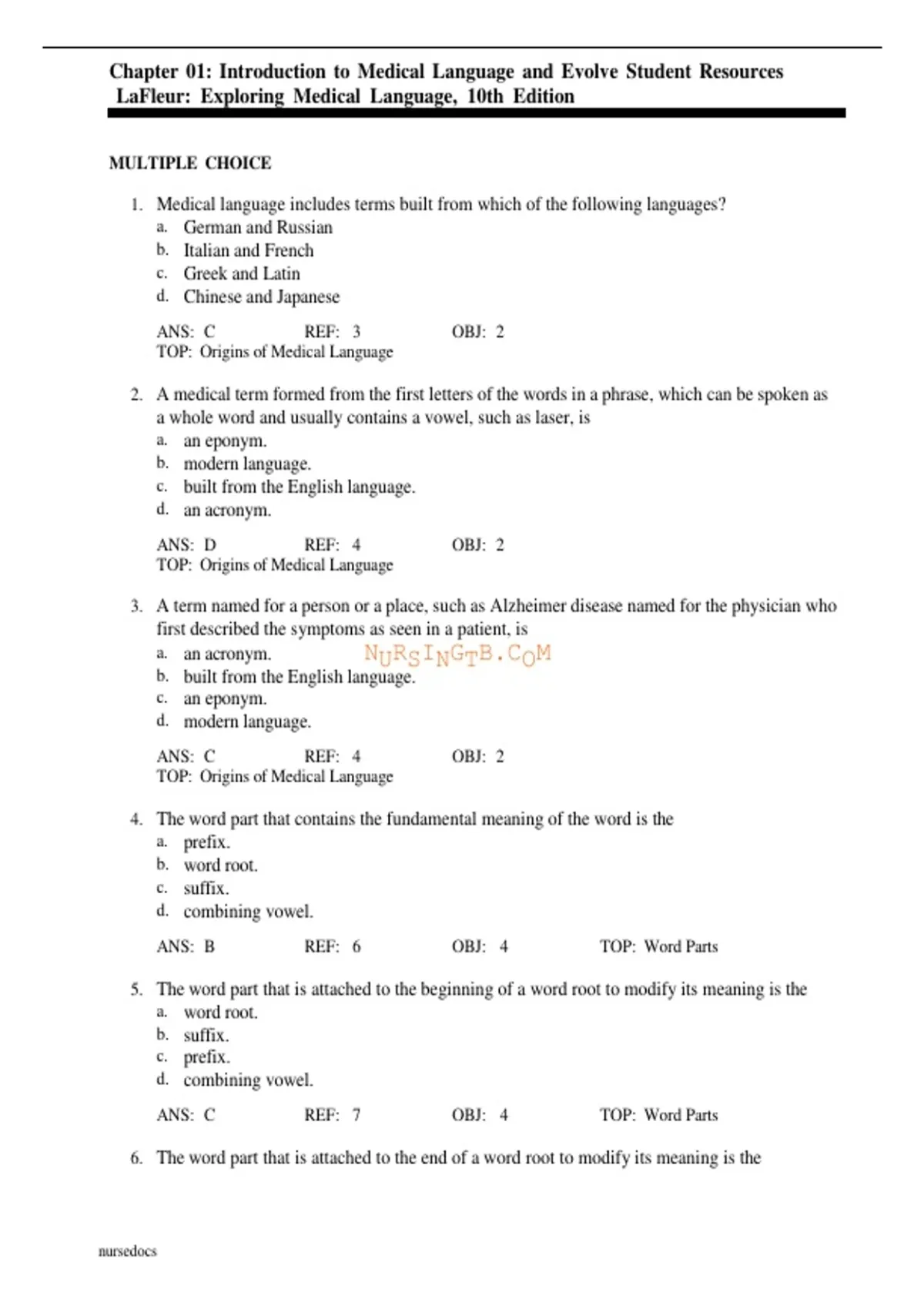 ANS: B REF: 6 OBJ: 4 TOP: Word Parts