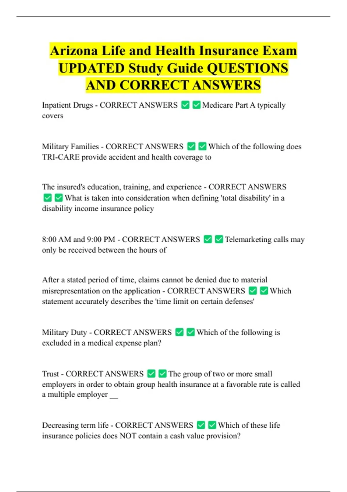 ,Noncancelable - CORRECT ANSWERS Which of the following health