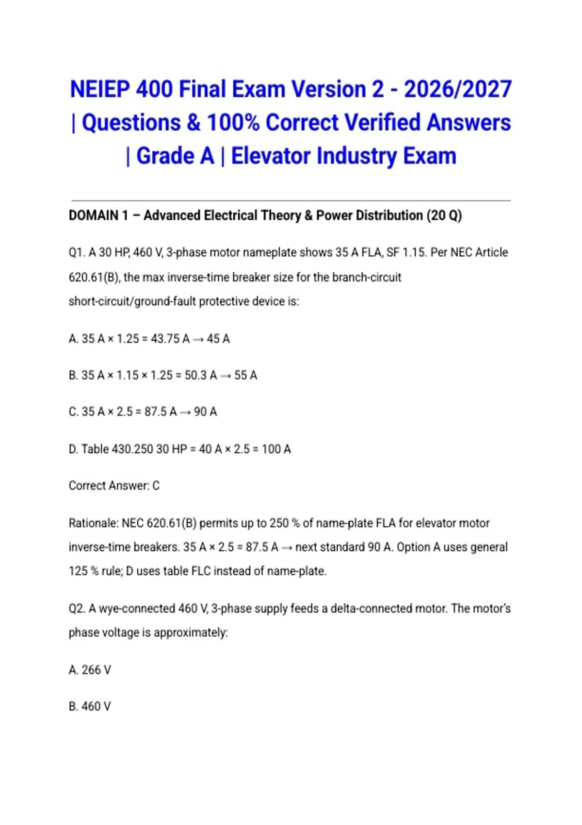 Q1. A 30 HP, 460 V, 3-phase motor nameplate shows 35 A FLA, SF 1.15. Per NEC Article