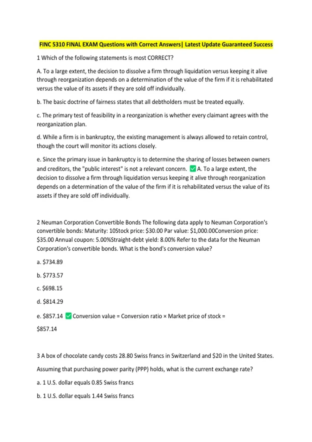 FINC 5310 FINAL EXAM Questions with Correct Answers| Latest Update Guaranteed Success