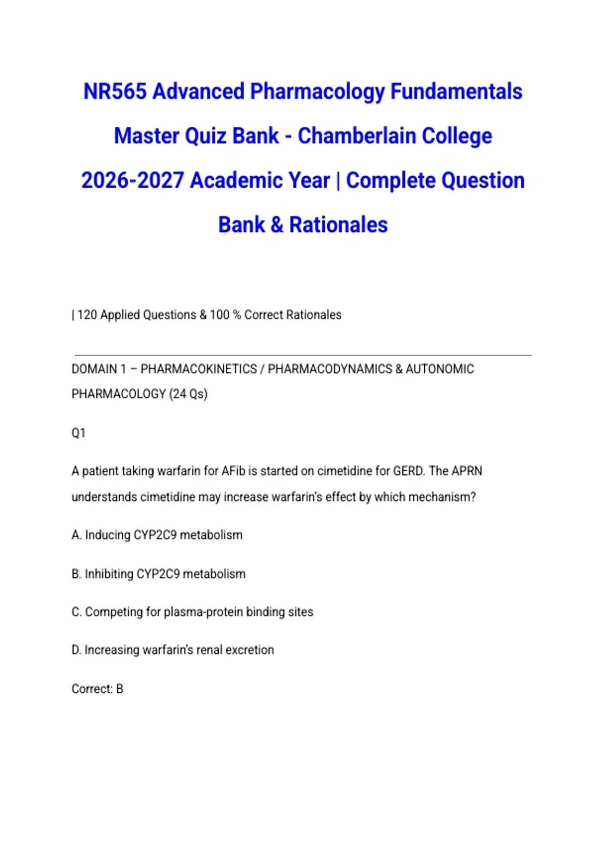 | 120 Applied Questions & 100 % Correct Rationales