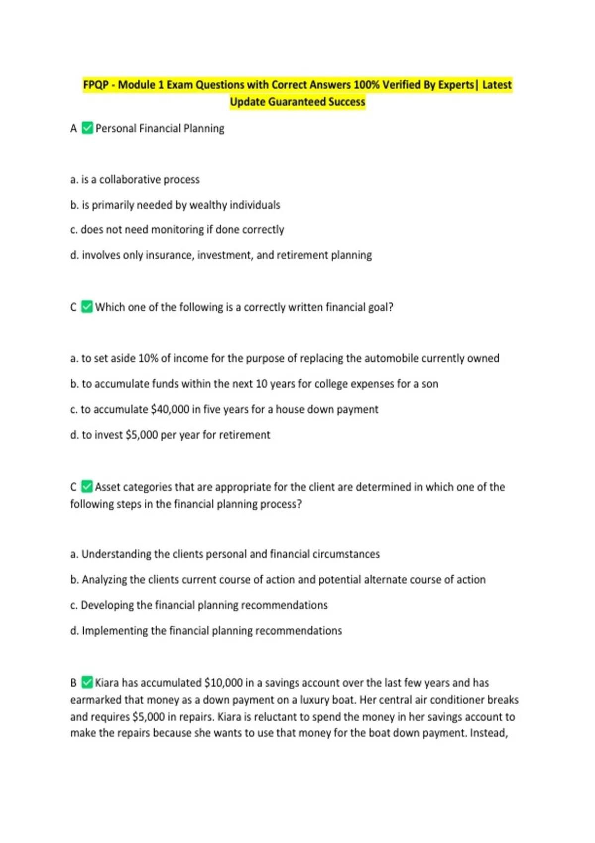 FPQP - Module 1 Exam Questions with Correct Answers 100% Verified By Experts| Latest