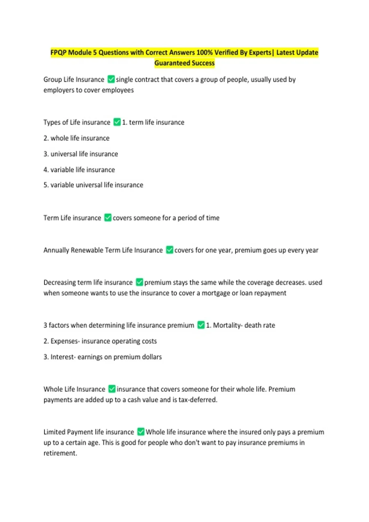 FPQP Module 5 Questions with Correct Answers 100% Verified By Experts| Latest Update