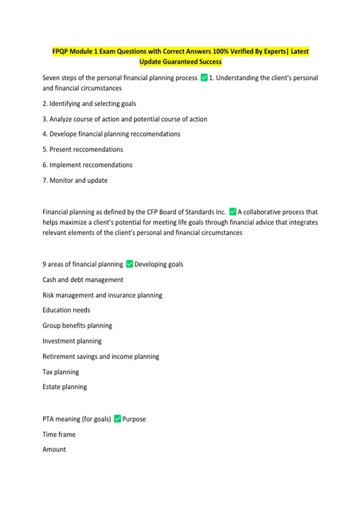 FPQP Module 1 Exam Questions with Correct Answers 100% Verified By Experts| Latest
