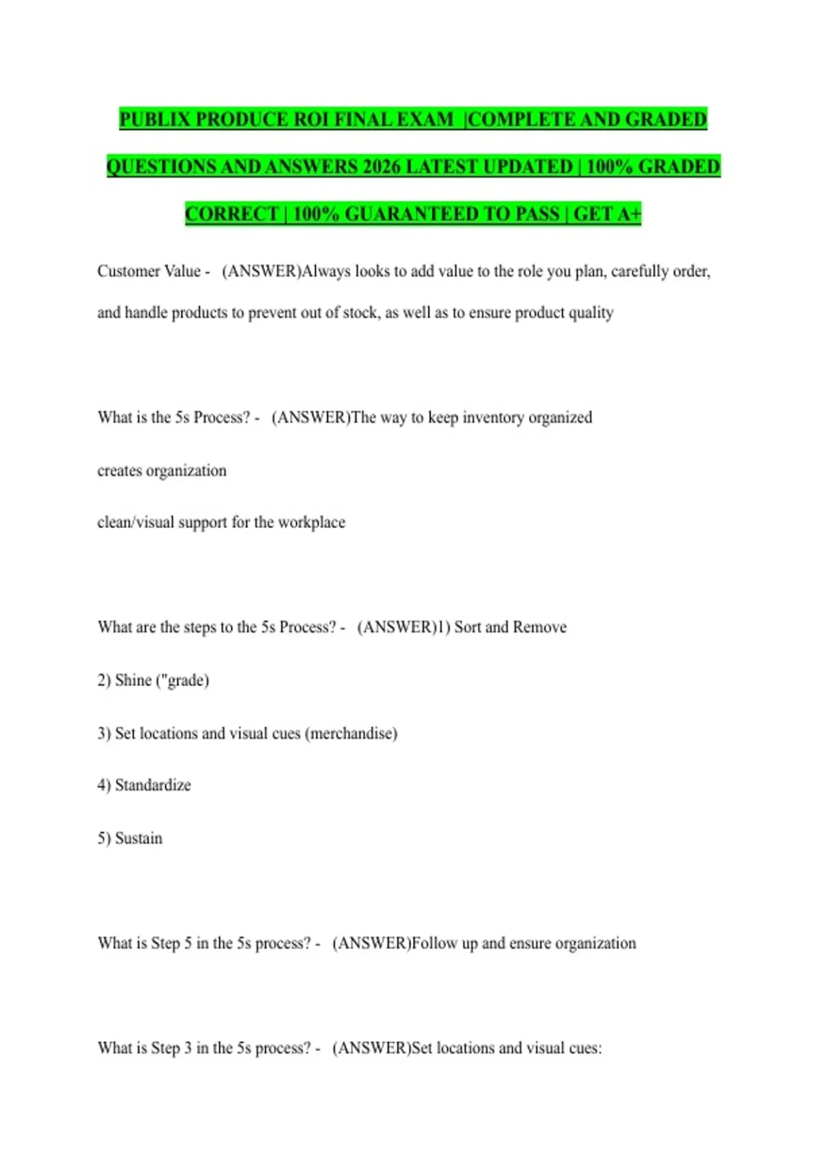 PUBLIX PRODUCE ROI FINAL EXAM |COMPLETE AND GRADED QUESTIONS AND ANSWERS 2026 LATEST UPDATED | 100% GRADED CORRECT | 100% GUARANTEED TO PASS | GET A+