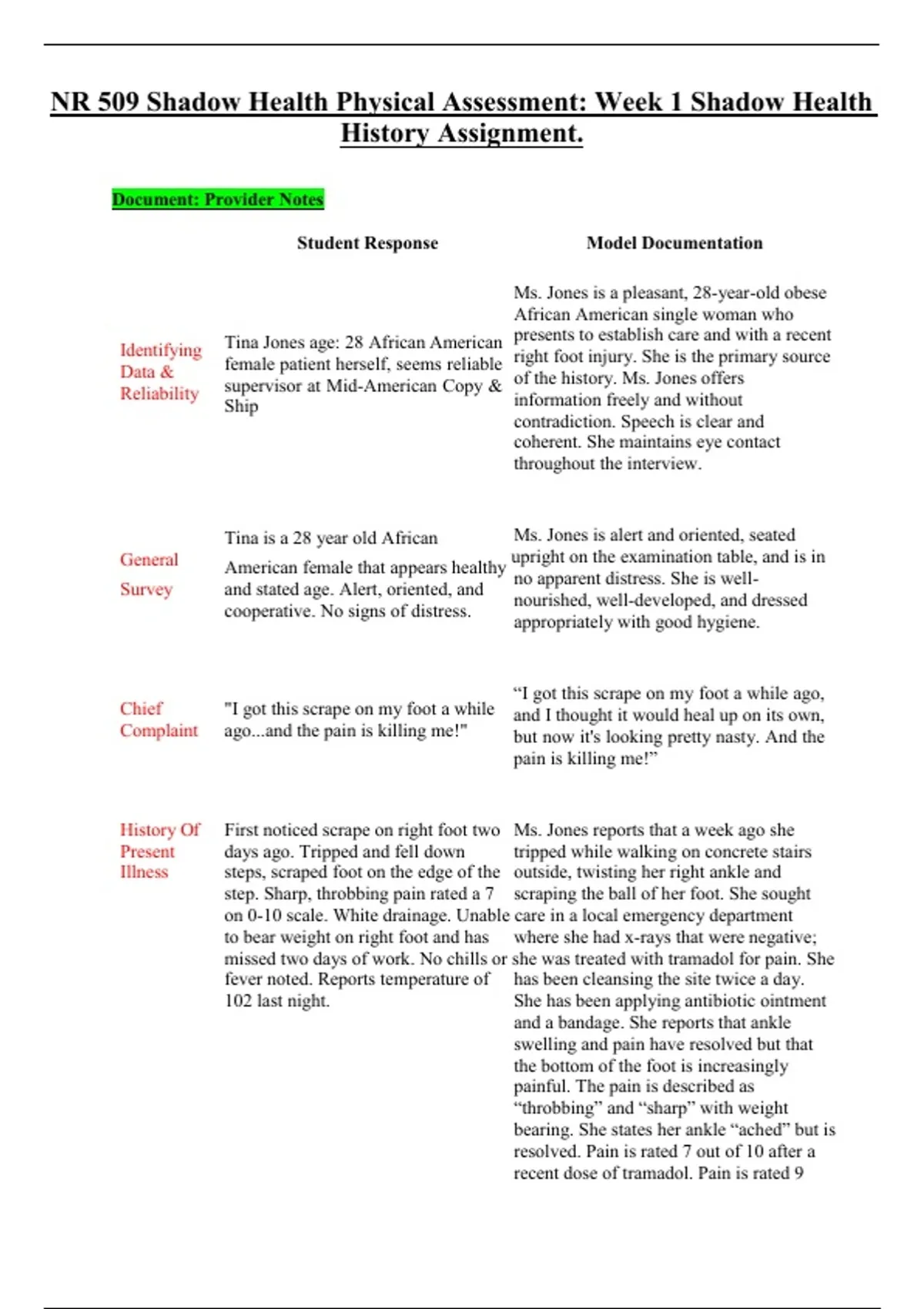 NR 509 Shadow Health Physical Assessment: Week 1 Shadow Health