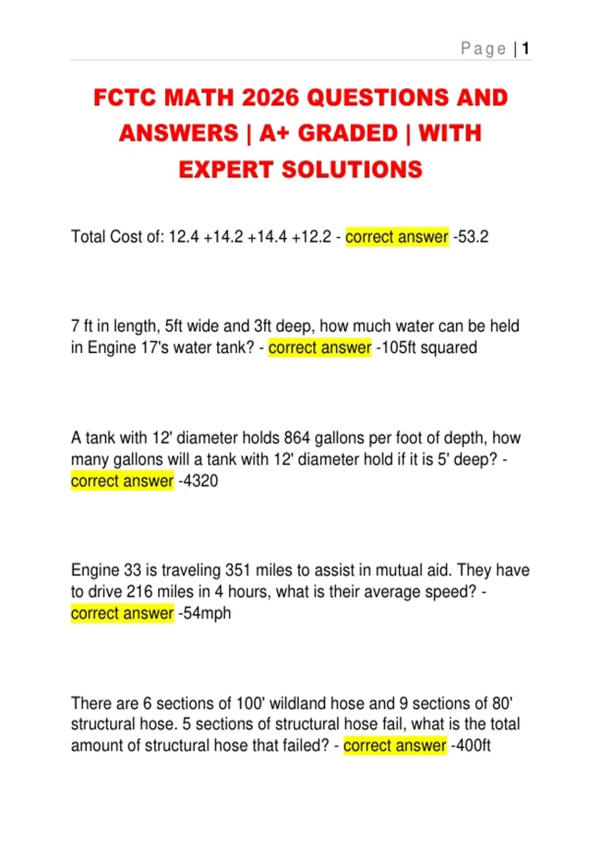 FCTC MATH 2026 QUESTIONS AND ANSWERS | A+ GRADED | WITH EXPERT SOLUTIONS